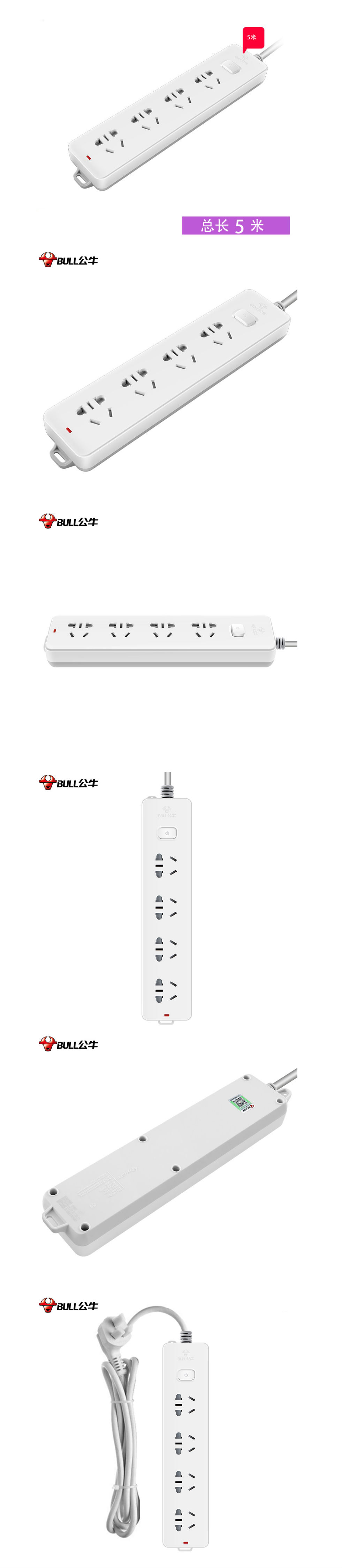 商品名称:公牛新国标 GN-410 5米-4位插排 总控开关5米电源插座