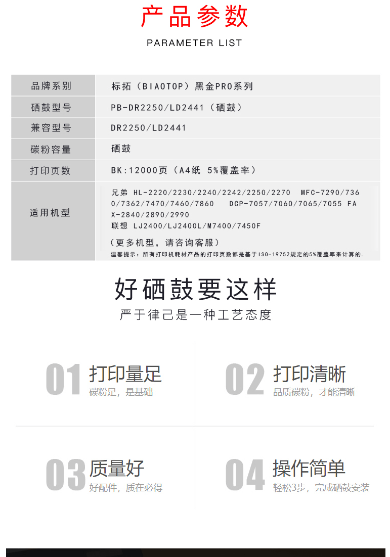 商品名称:标拓 (Biaotop) DR2250/LD2441硒鼓架北极熊版适用兄弟2240/2250DN/7360 联想LJ2400/M7450F打印机 北极熊版