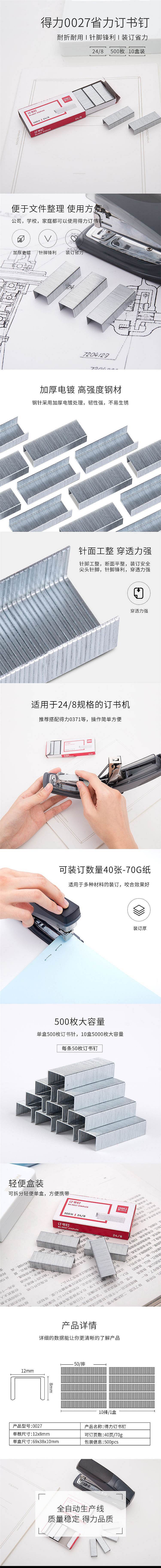 商品名称:得力(deli)24/8加厚订书钉/订书针 500枚一盒 0027