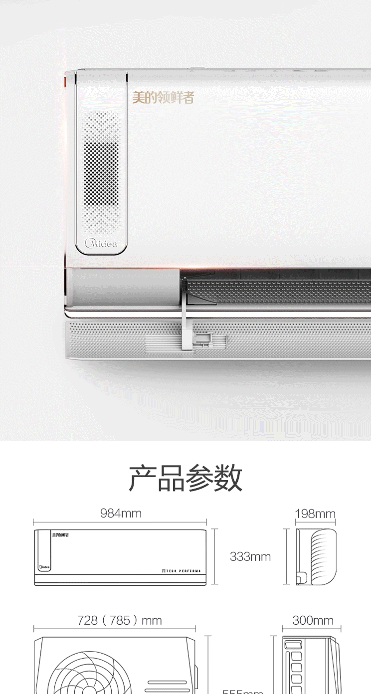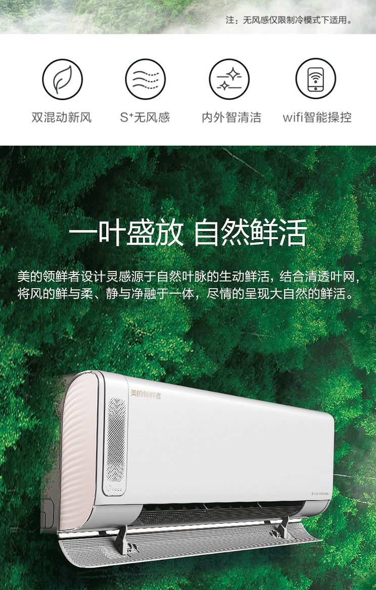 商品名称:美的(Midea) 大1匹 一级能效 全直流变频 冷暖壁挂式新风无风感 KFR-26GW/BP3DN8Y-KW200(B1)