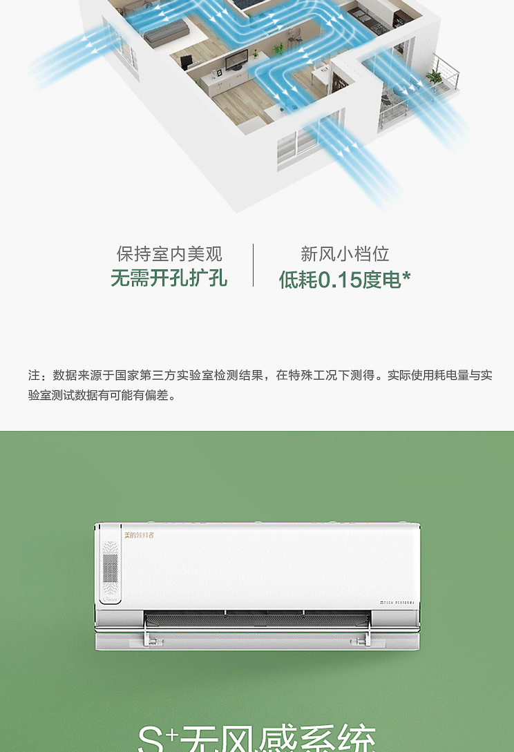 美的(Midea)1.5匹新风系统 变频冷暖 空调挂机 KFR-35GW/BP3DN8Y-KW100(B1)