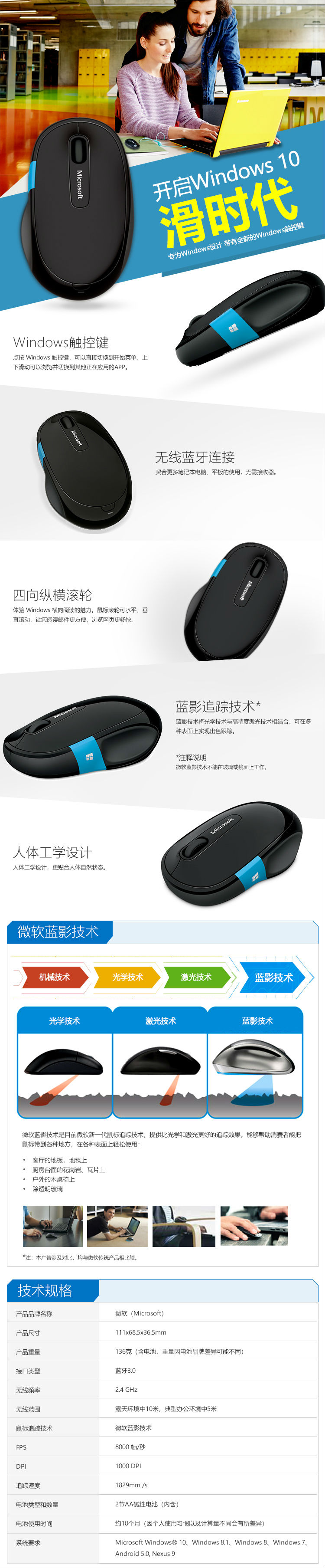 商品名称:微软 (Microsoft) Sculpt舒适滑控鼠标 黑色 无线蓝牙 纵横滚轮 Windows触控键