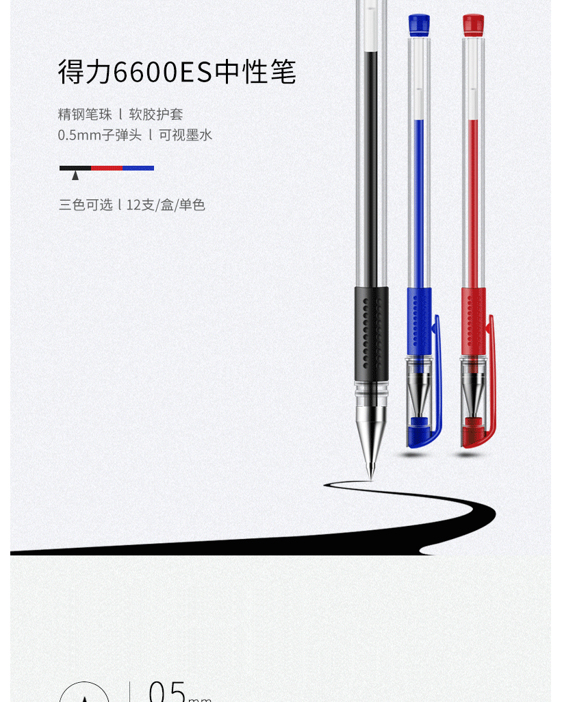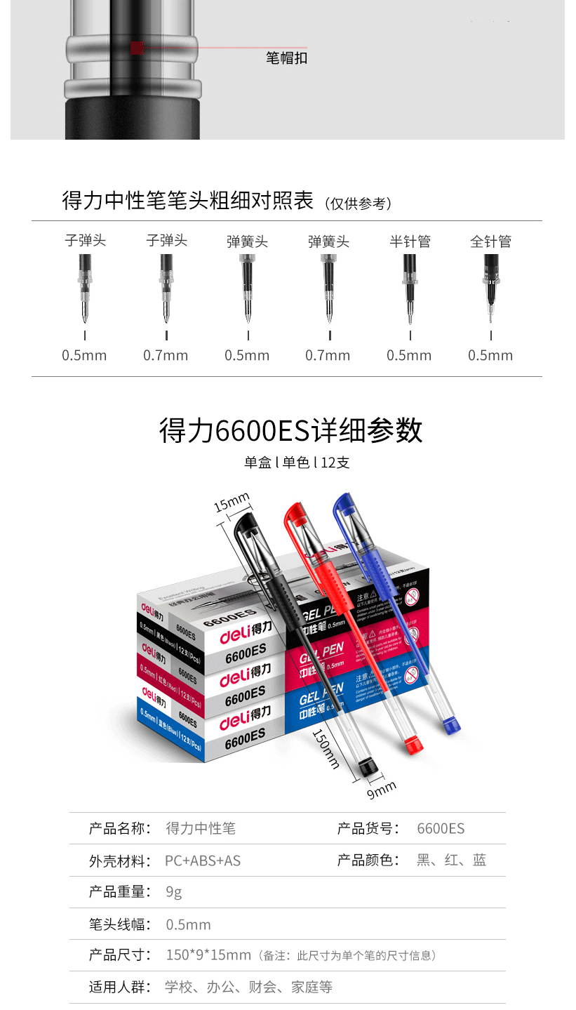 商品名称:得力(deli) 中性笔碳素水笔0.5mm 黑色/支 6600ES