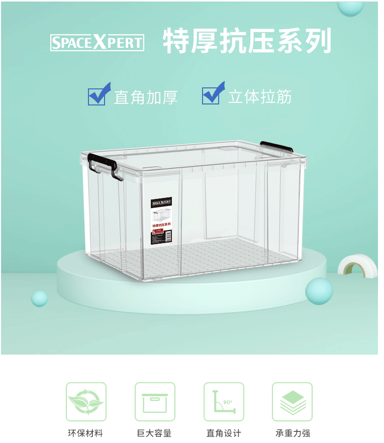 商品名称:SPACEXPERT 直角抗压高透塑料收纳箱 108L