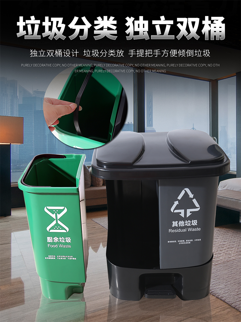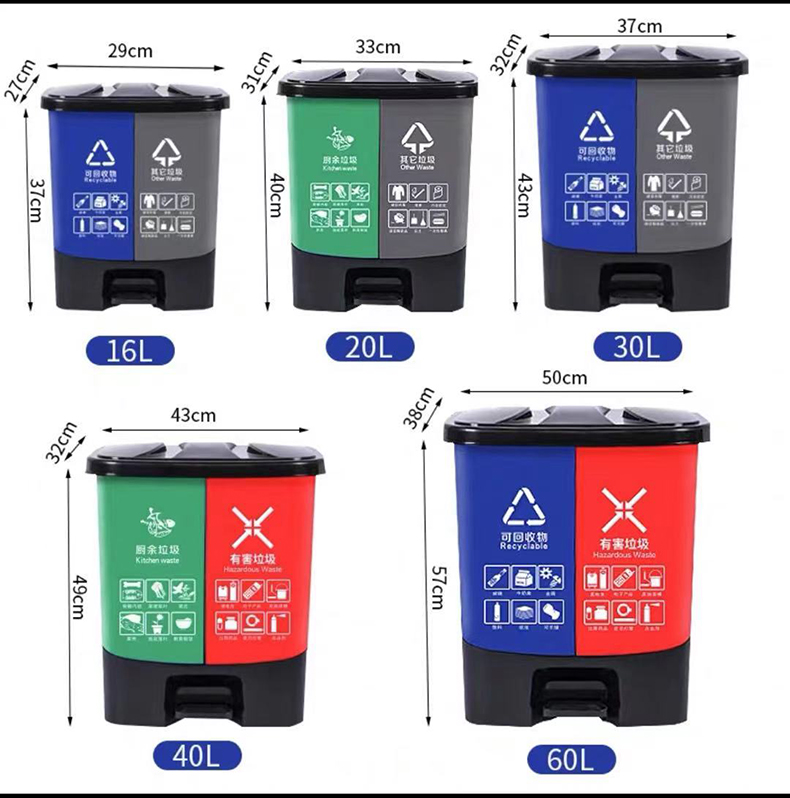 商品名称:ZFPC 脚踏式分类垃圾桶 带盖可回收塑料双桶 40L 2个/组
