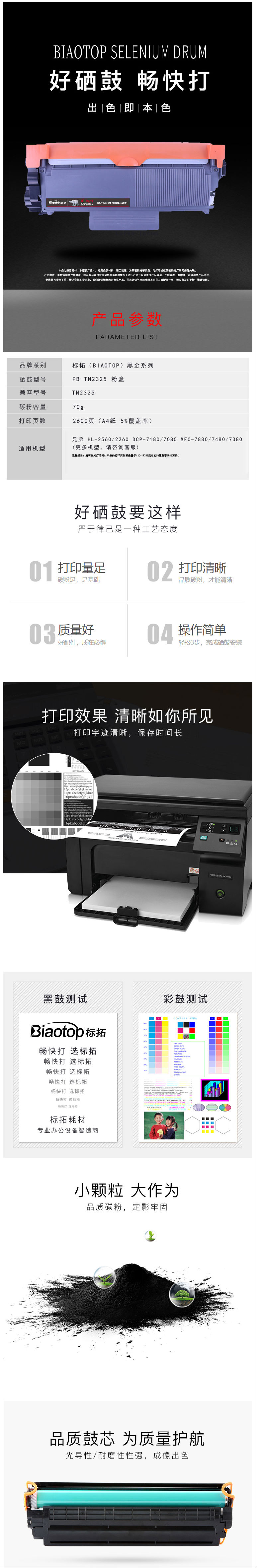 商品名称:标拓 (Biaotop) TN2325粉盒适用兄弟2260D/7080D/DCP-7180DN/7380/7480D打印机