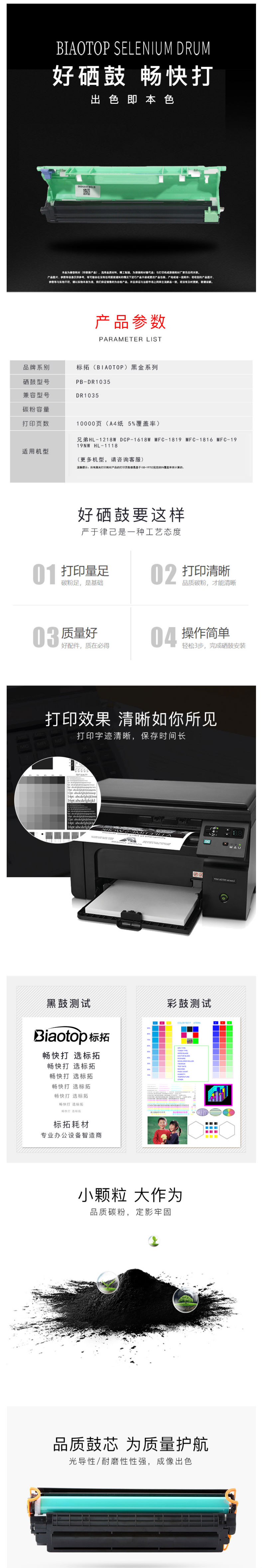 商品名称:标拓 (Biaotop) DR1035硒鼓架适用兄弟HL-1218W DCP-1618W MFC-1819 MFC-1816 MFC-1919NW HL-1118 北极熊版