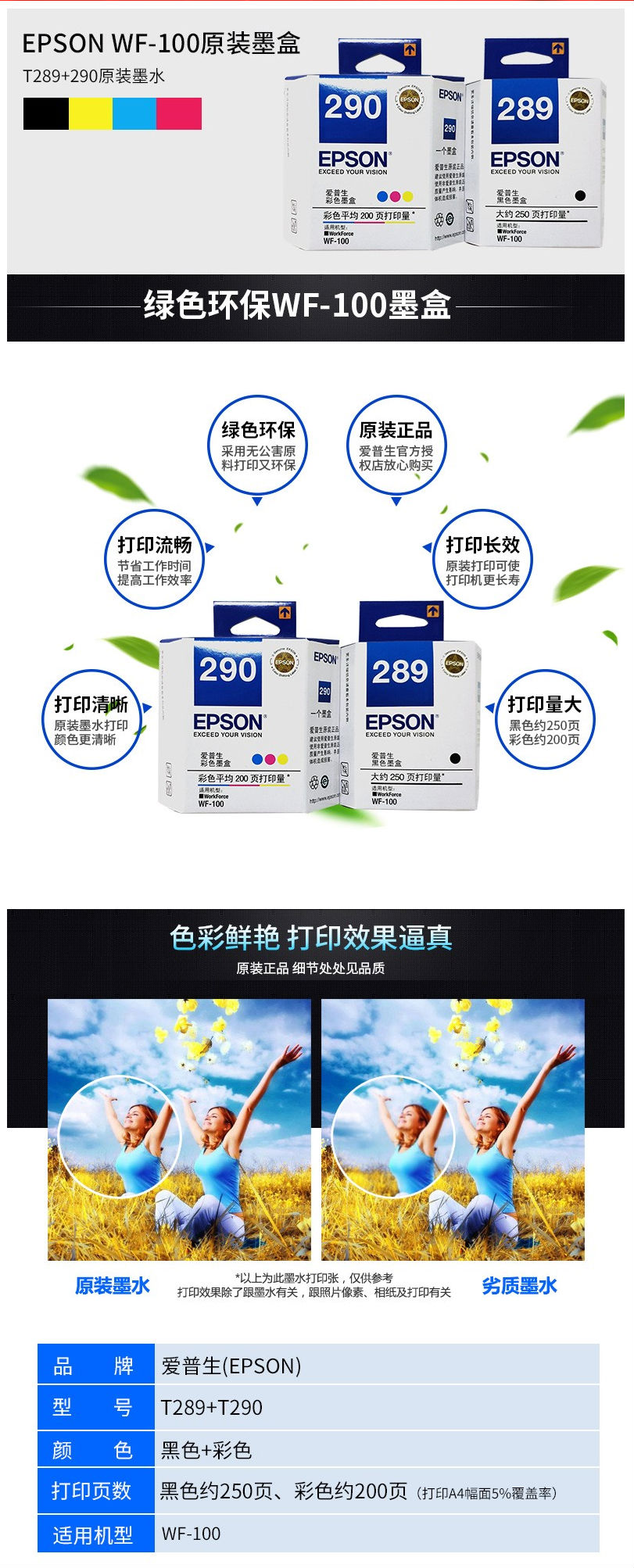商品名称:爱普生(EPSON)原装墨盒 T290彩色 适用于:WF-100机型