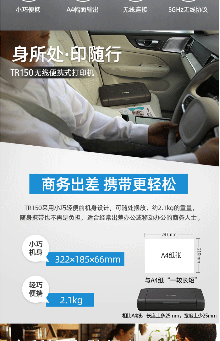 商品名称:佳能(Canon)无线便携式打印机 TR150标机