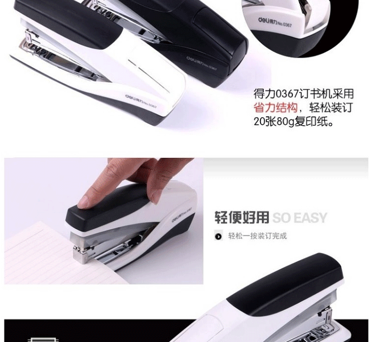 商品名称:得力(deli) 省力订书机 0367黑色