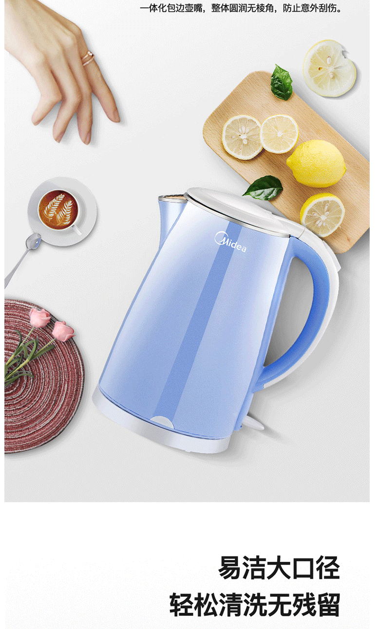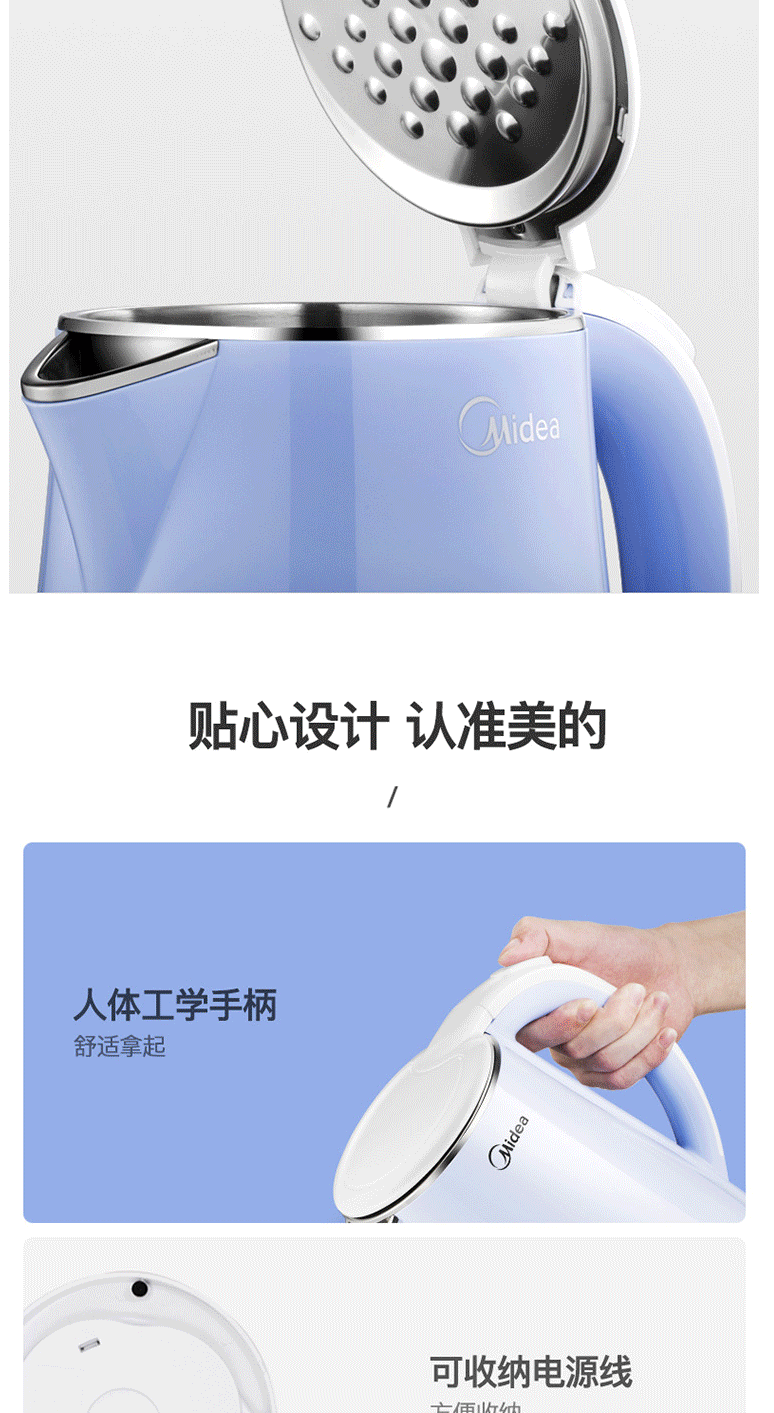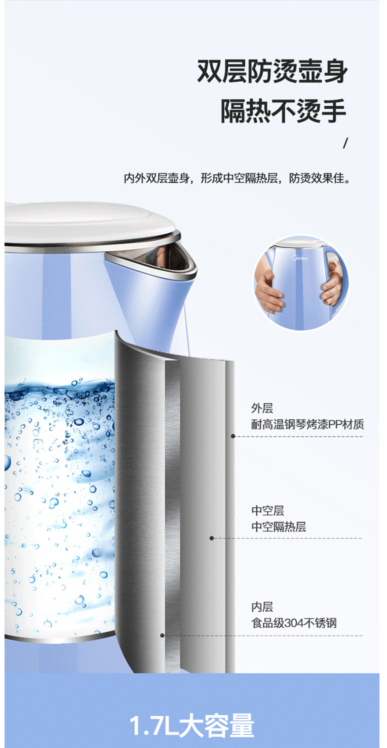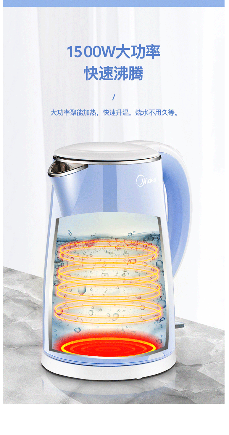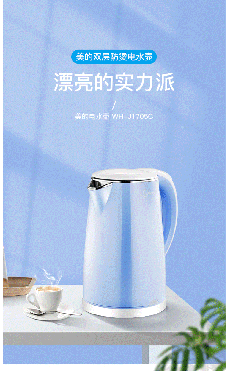 美的(Midea)电水壶 电热水壶 304不锈钢 1.7L容量 WHJ1705C 热水壶