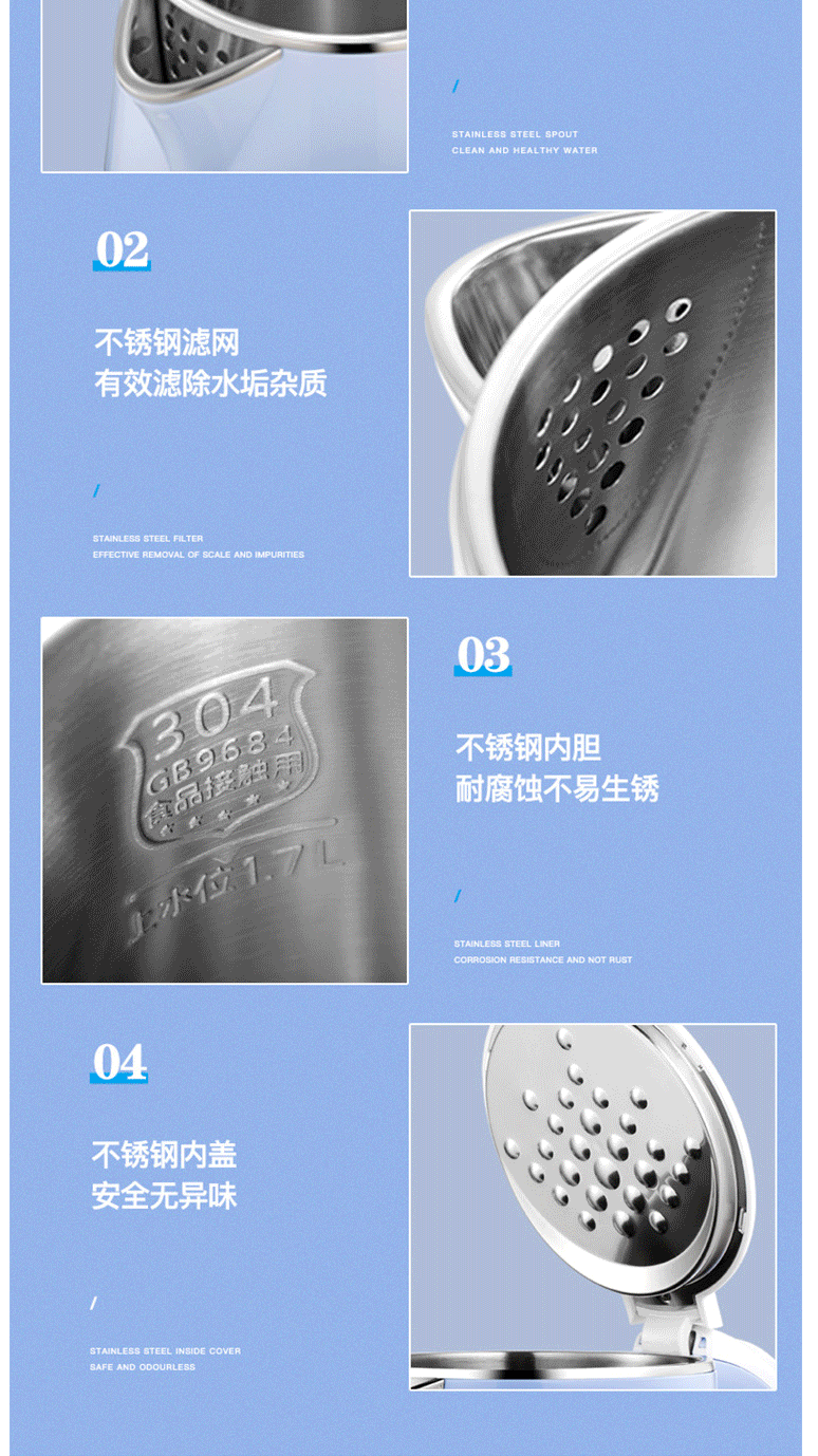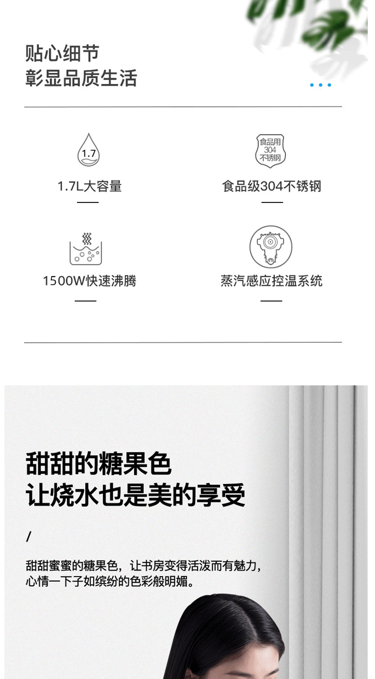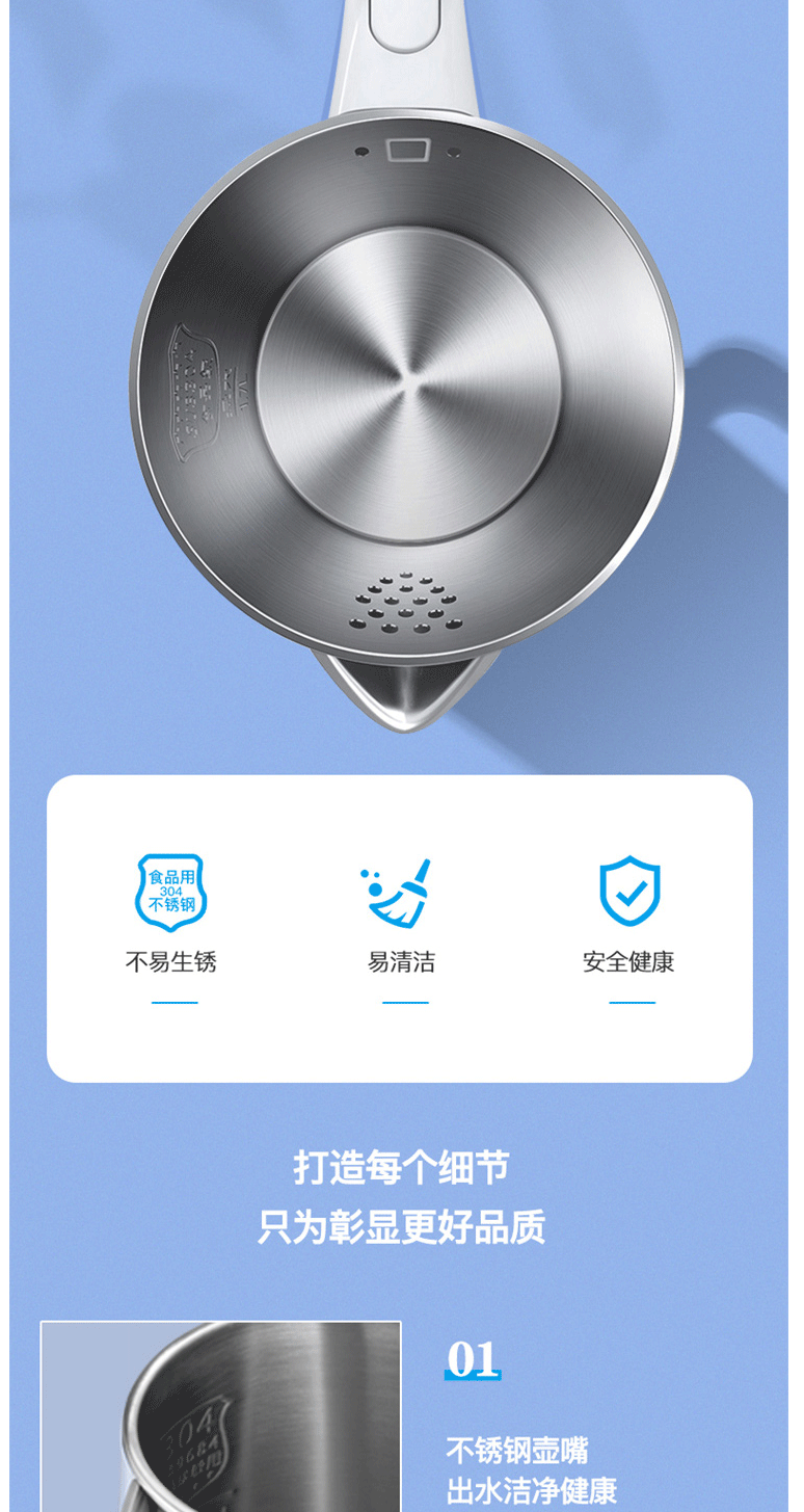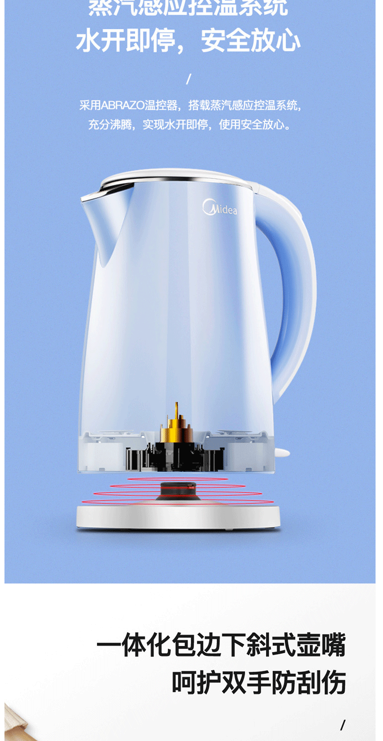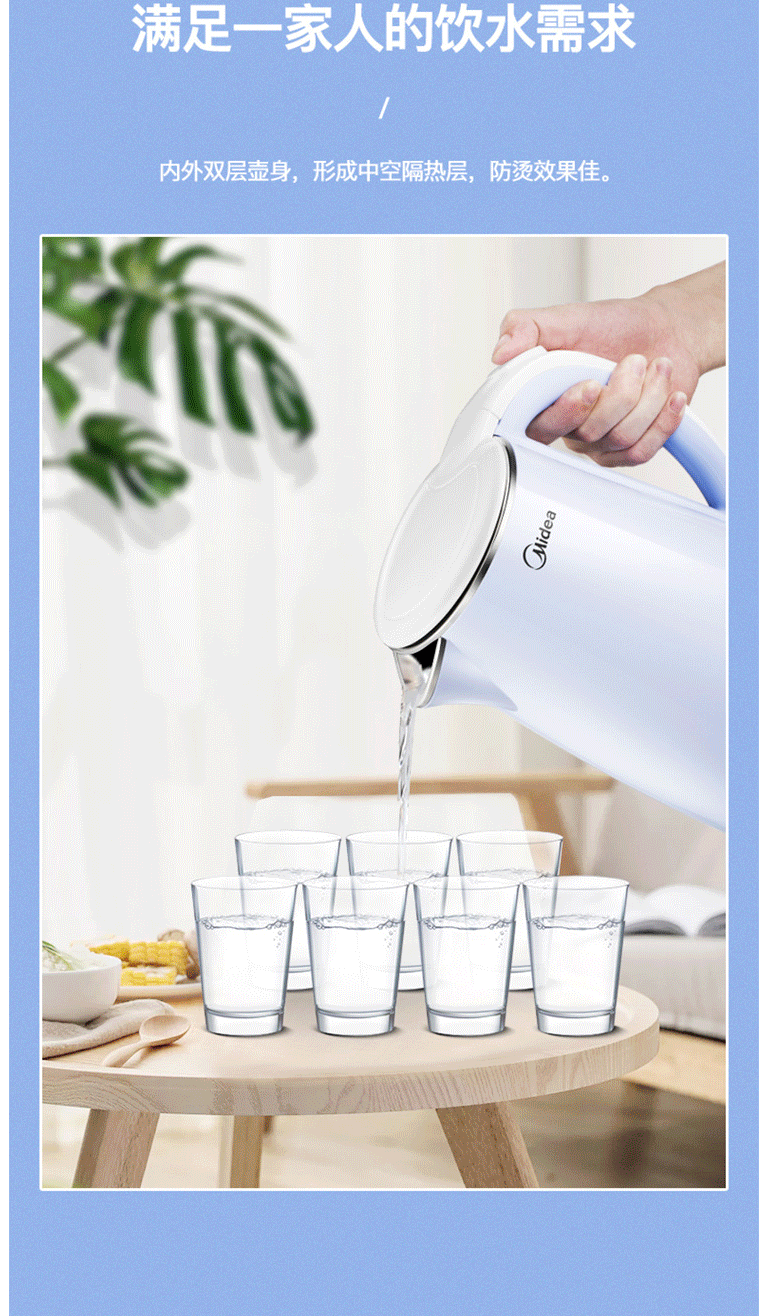 美的(Midea)电水壶 电热水壶 304不锈钢 1.7L容量 WHJ1705C 热水壶