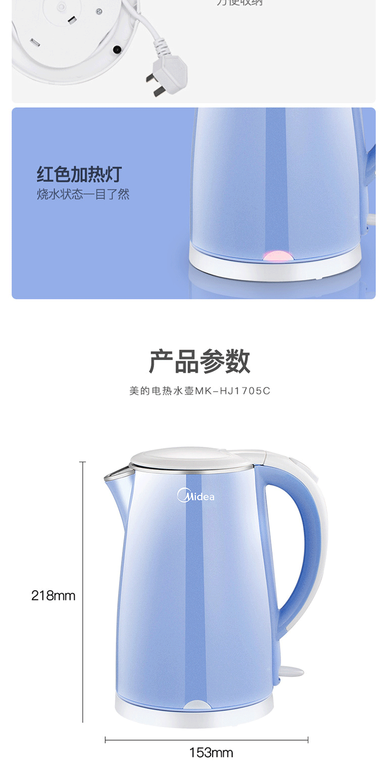 商品名称:美的(Midea)电水壶 电热水壶 304不锈钢 1.7L容量 WHJ1705C 热水壶