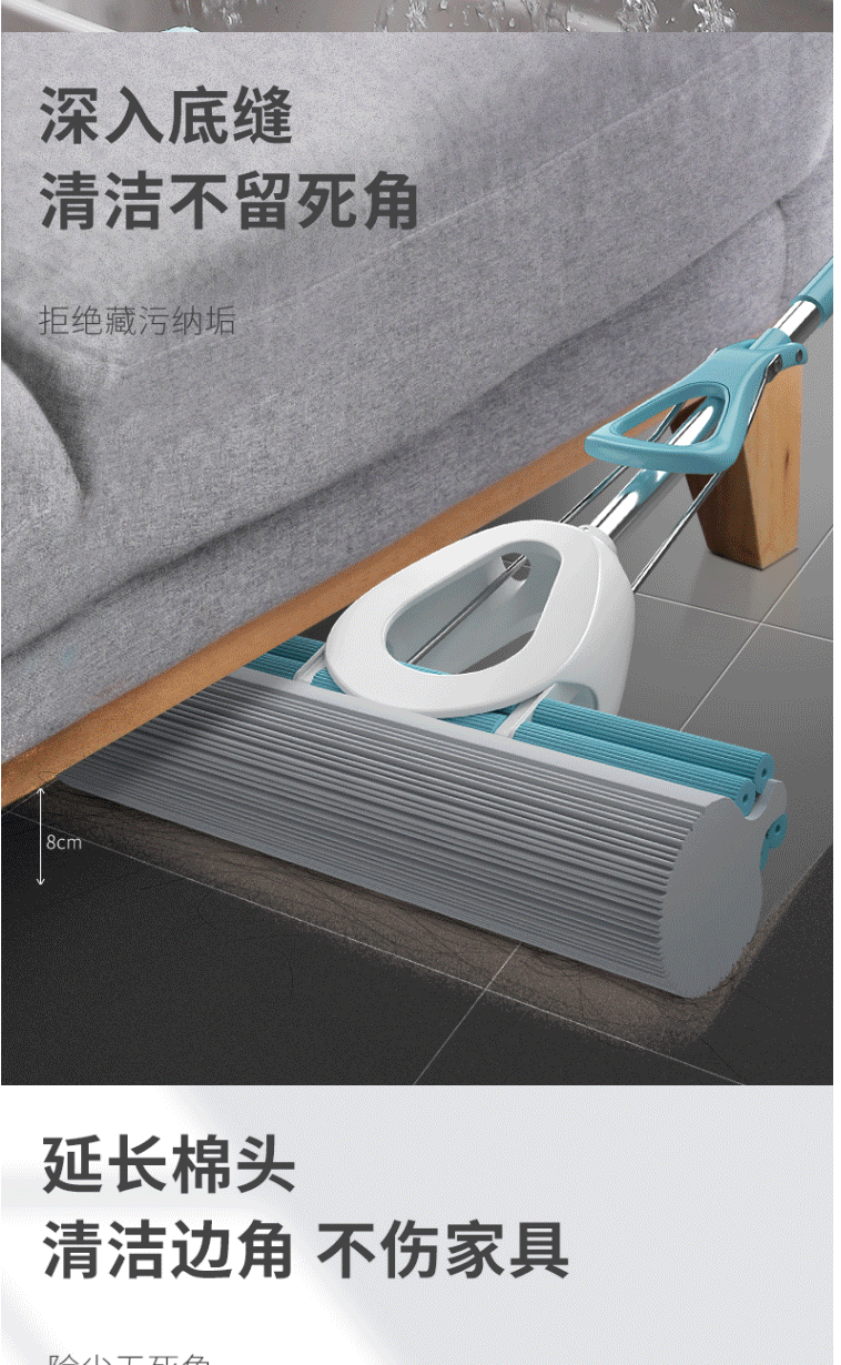 商品名称:美丽雅海绵拖把 双排滚轮免手洗胶棉拖把 28CM