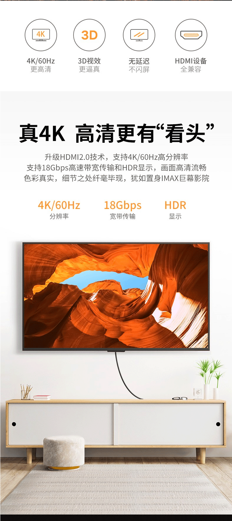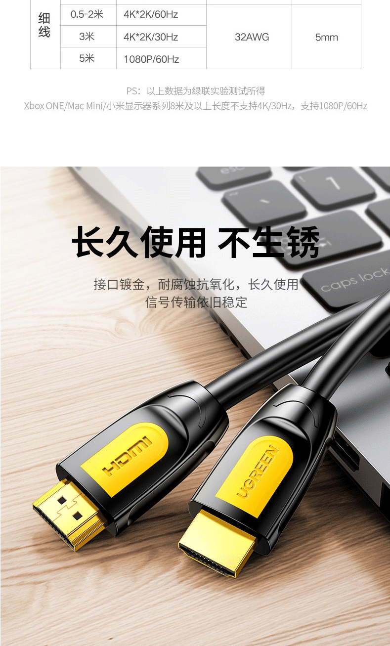 商品名称:绿联 HDMI线2.0版 4k数字高清线 1米 10115