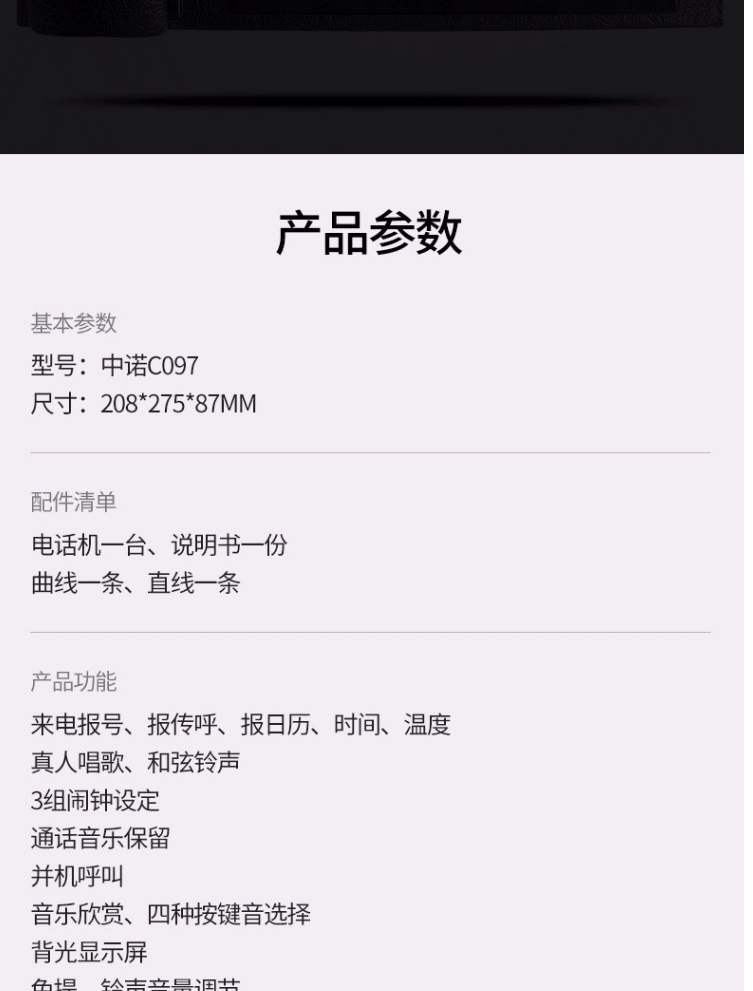商品名称:中诺 真皮电话机 座式固定电话 C097型黑色