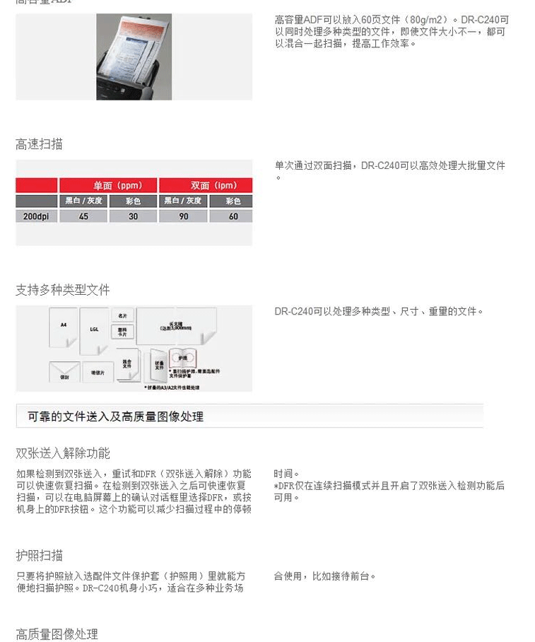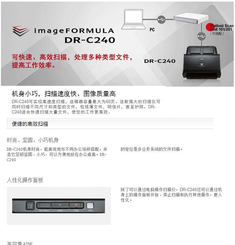 商品名称:佳能(Canon)DR-C240 桌面送纸型文件高效快速扫描仪