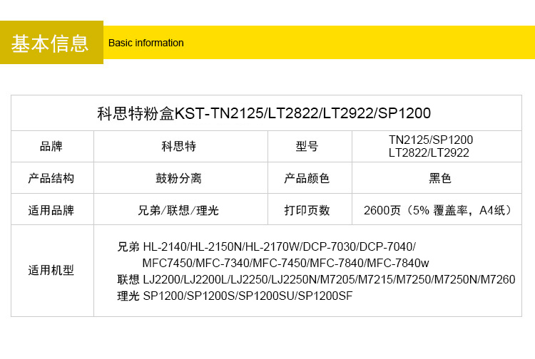 型号:K TN2125/LT2822/LT2922/SP1200(粉盒)
