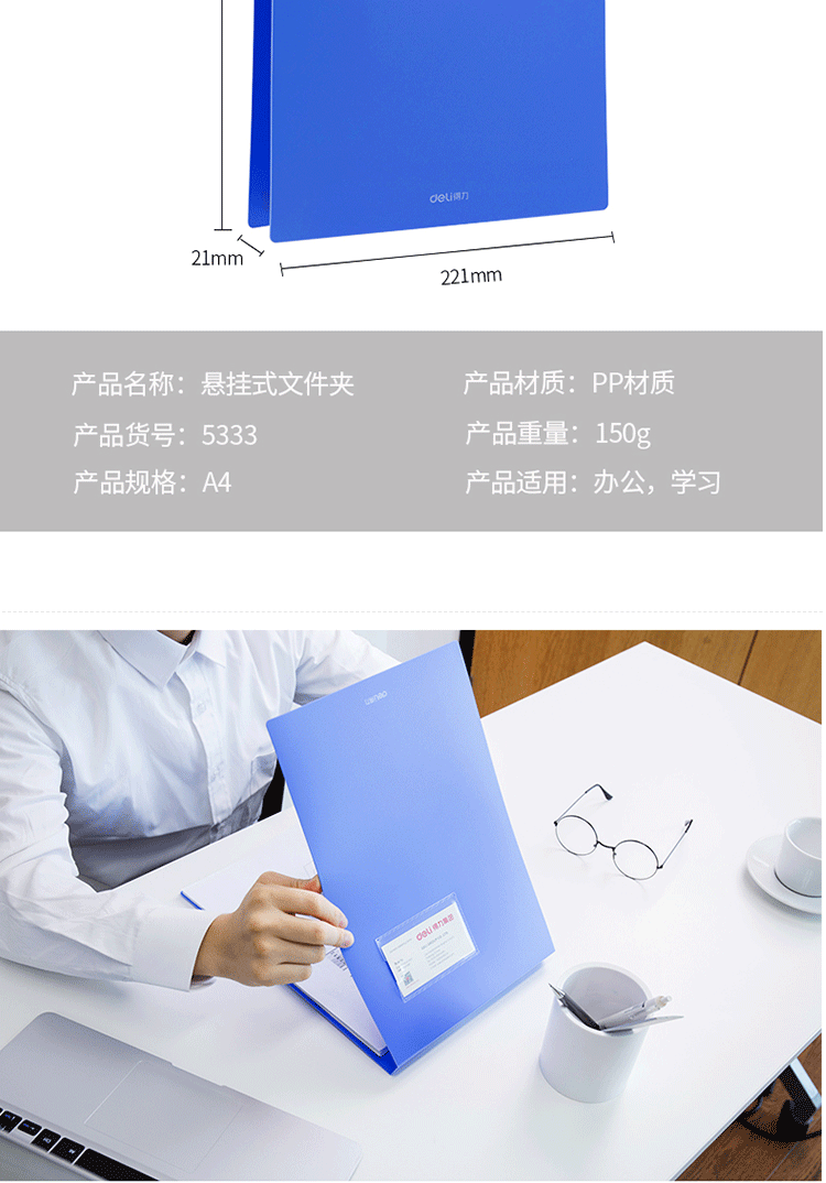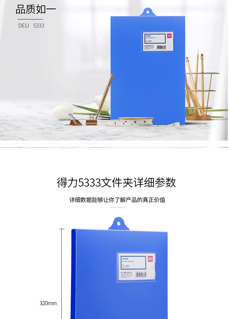 商品名称:得力(deli)A4悬挂式文件夹板 5333