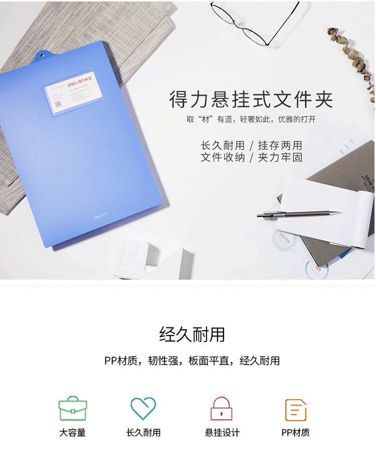 得力(deli)A4悬挂式文件夹板 5333