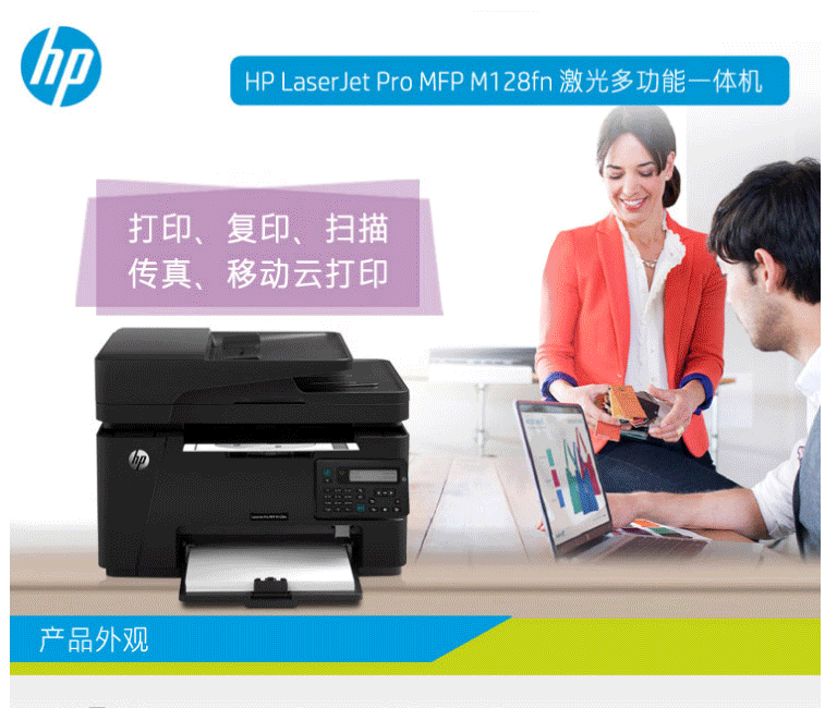 商品名称:惠普 (HP)M128FN 黑白激光打印机 (打印复印扫描传真+有线网络)