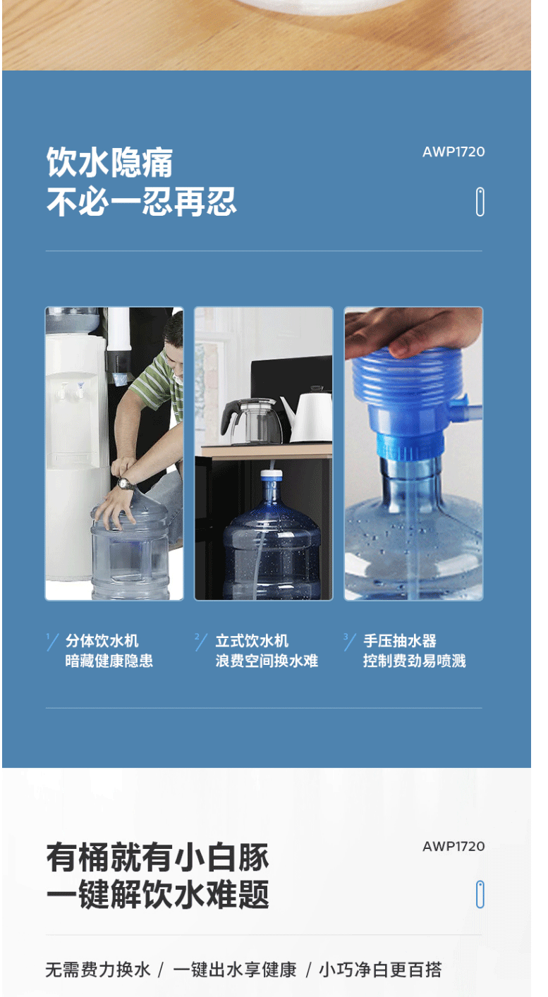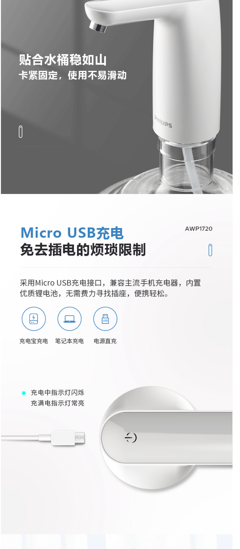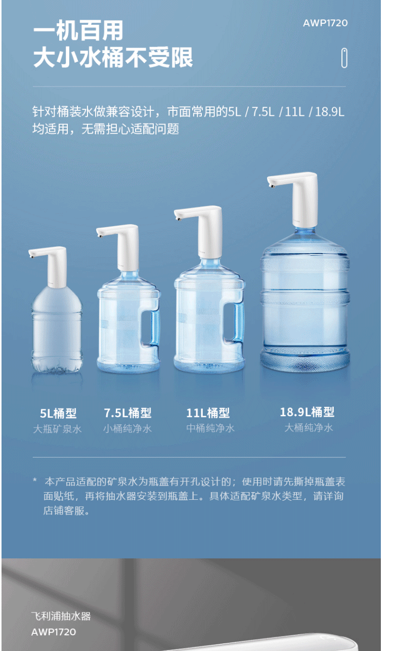 飞利浦(PHILIPS)桶装水电动抽水机 抽水器上水器 AWP1720