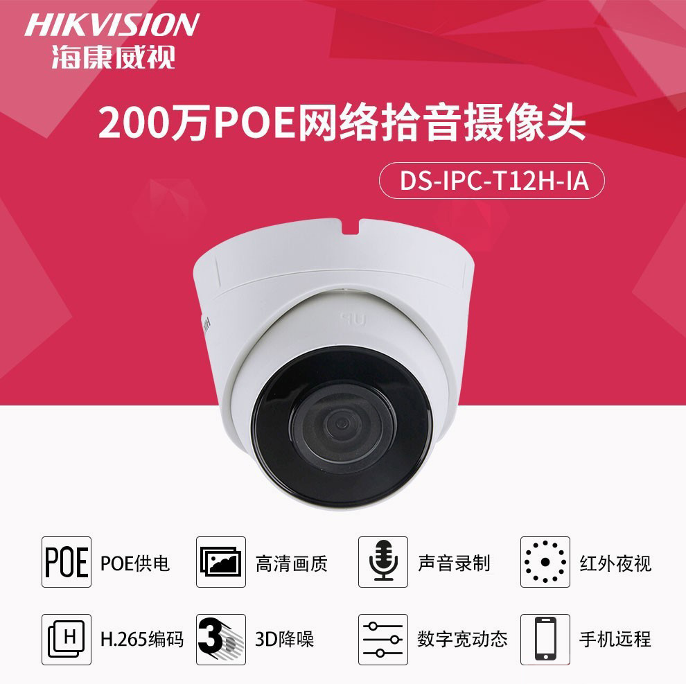 商品名称:海康威视(HIKVISION)网络监控摄像头 DS-IPC-T12H-IA(2.8mm/POE)