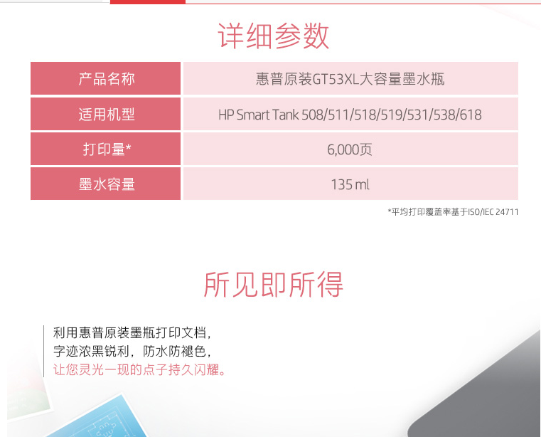 商品名称:惠普 打印机墨水1VV21AA GT53XL 黑色 (适用于HP INK Tank 310 410 319 419 318 418)