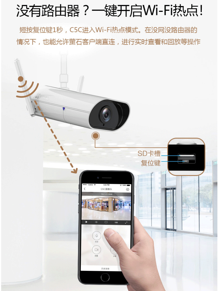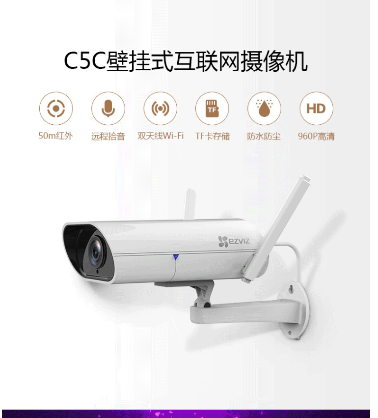 商品名称:海康威视萤石C5C 高清网络摄像头 8mm 130万枪机摄像头(含电源支架)