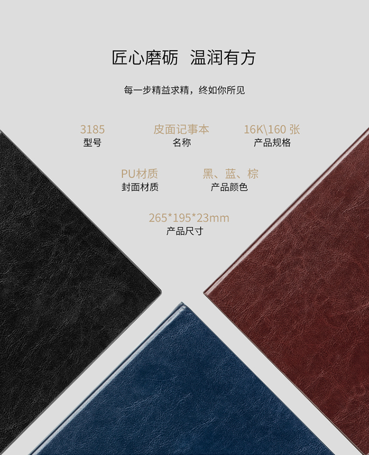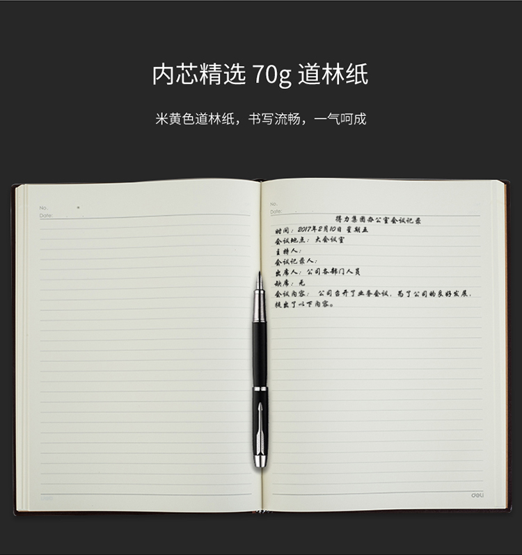 商品名称:得力(deli)16K160张加厚商务皮面本 会议记事本笔记本 3185黑色(单位:本)