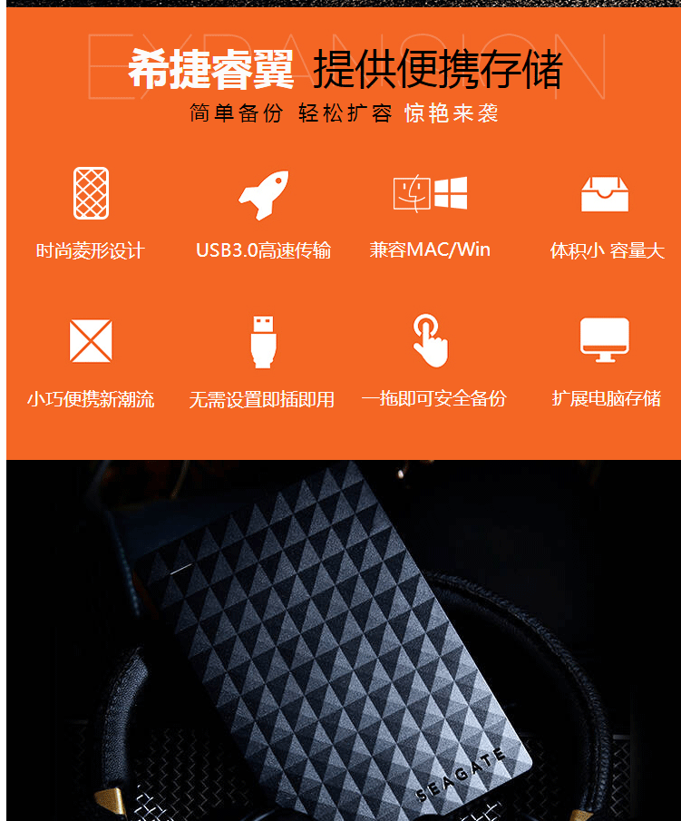 商品名称:希捷(Seagate) 移动硬盘 2TB USB3.0 睿翼