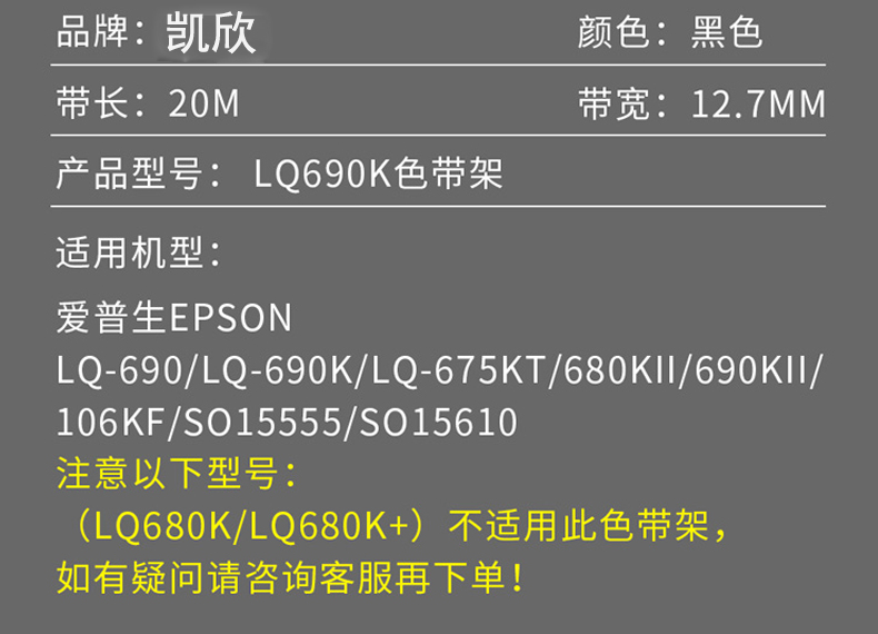 商品名称:凯欣KX-LQ680KII色带架( 适用爱普生LQ680Kii LQ675KT LQ695C LQ106KF LQ690C针式打印机色带架)