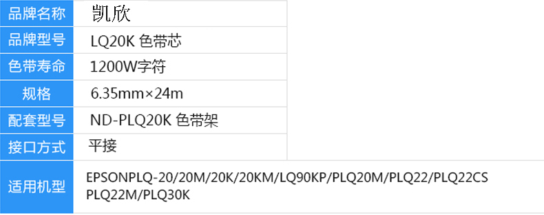 商品名称:凯欣KX-LQ20K色带芯(适用爱普生PLQ-20 20M 20K 20KM LQ90KP PLQ20M PLQ22 PLQ22CS打印机色带芯)