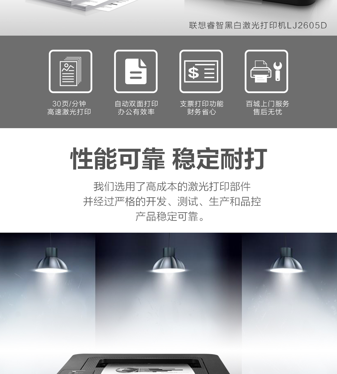 商品名称:联想(Lenovo)LJ2605D 黑白激光自动双面打印机 A4打印 小型办公商用家用双面打印