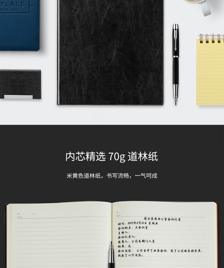 商品名称:得力(deli) A4/160张加大加厚商务皮面本 3306黑色 (单位:本)