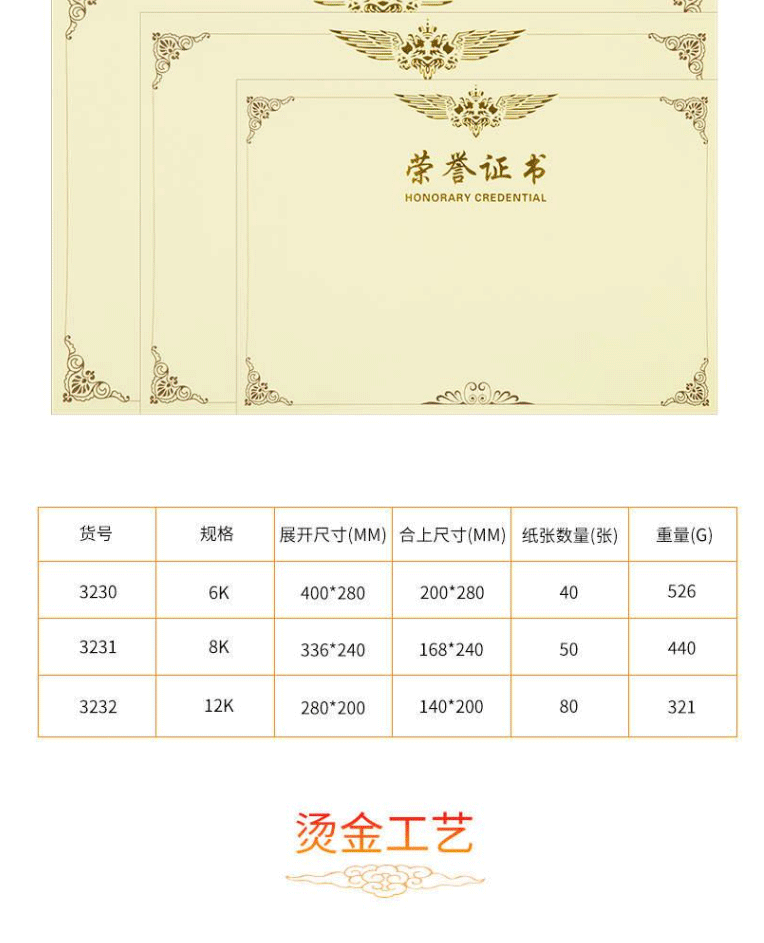 商品名称:得力(deli)12K荣誉证书内芯 3232 50张/包