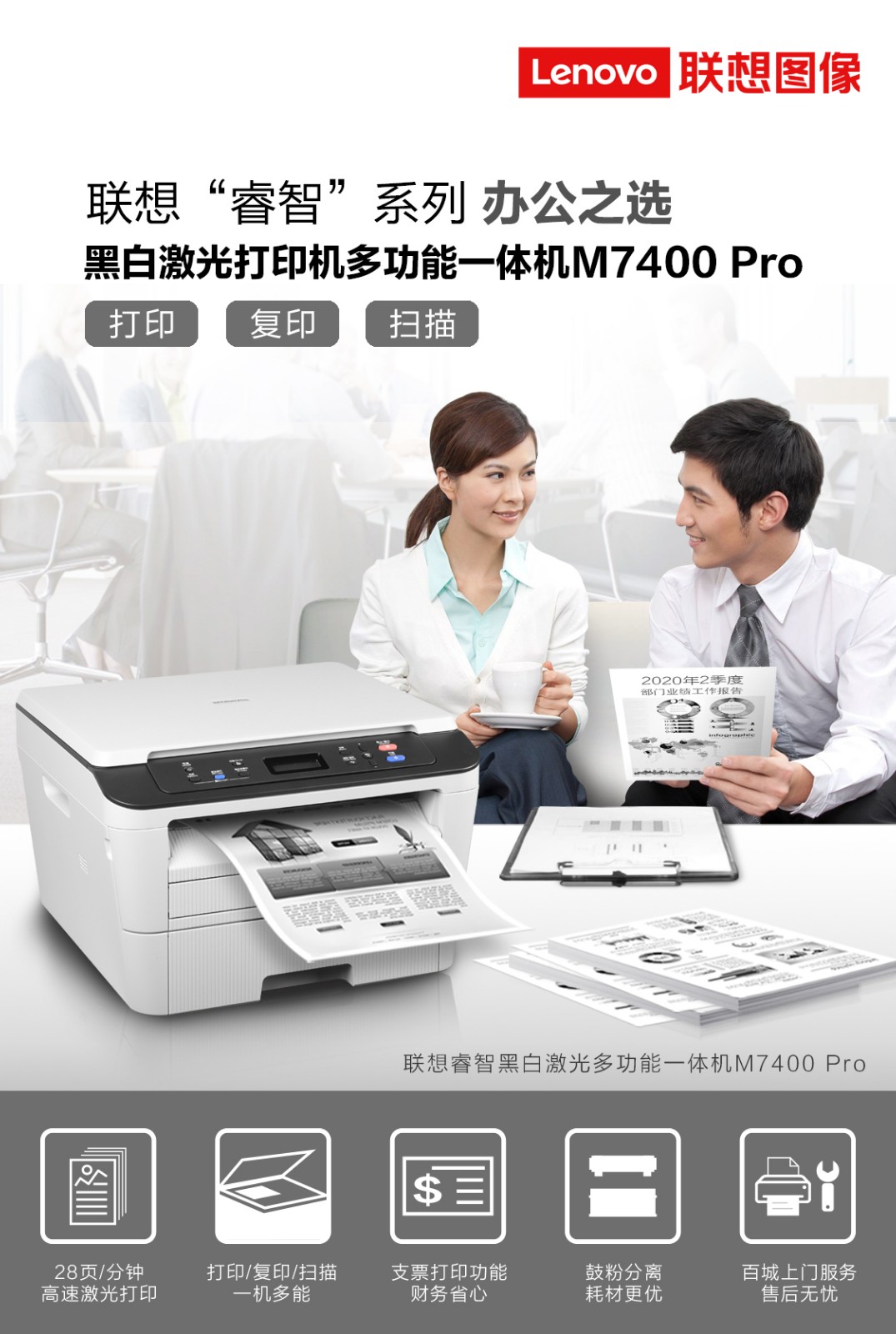 商品名称:联想(Lenovo)M7450F Pro 黑白激光多功能一体机商用办公家用打印(打印 复印 扫描 传真)
