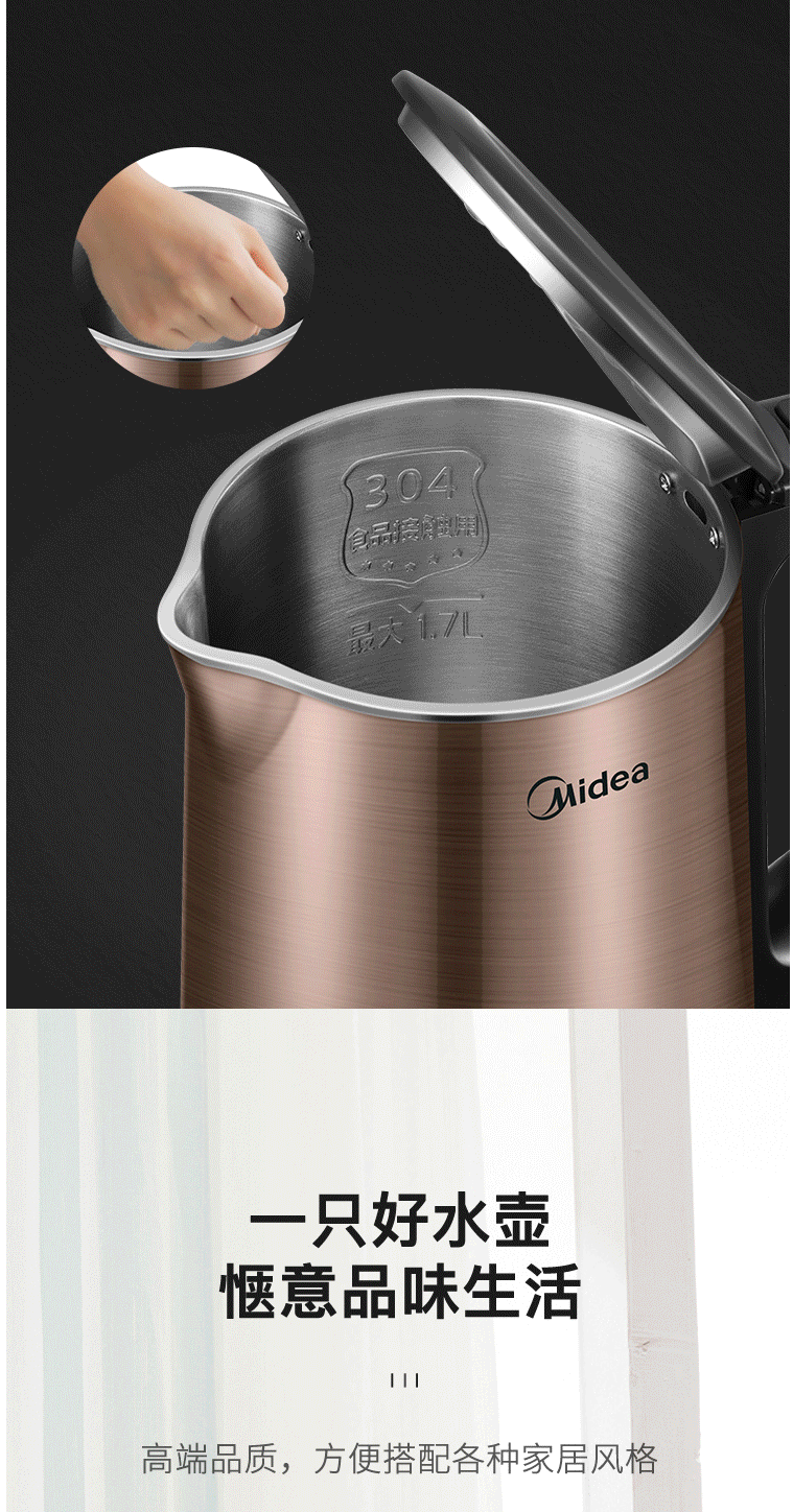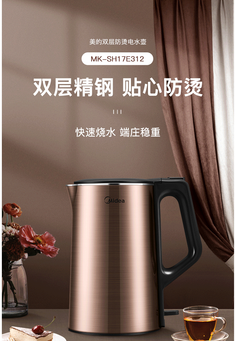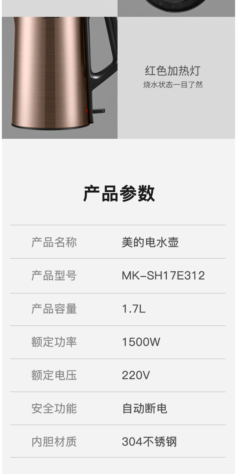 美的(Midea)电水壶热水壶烧水壶1.7L MK-SH17E312