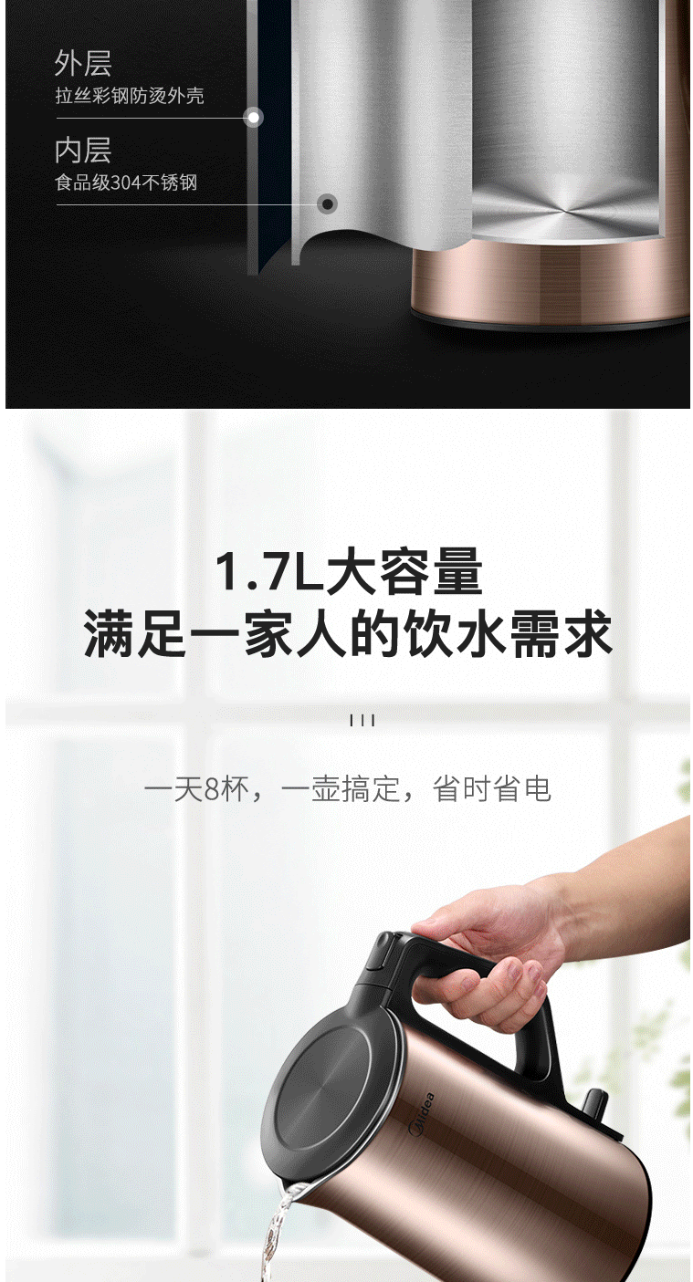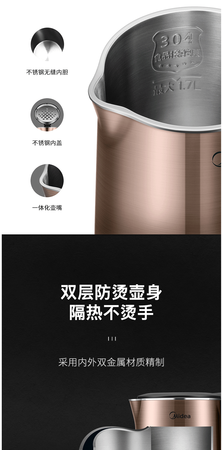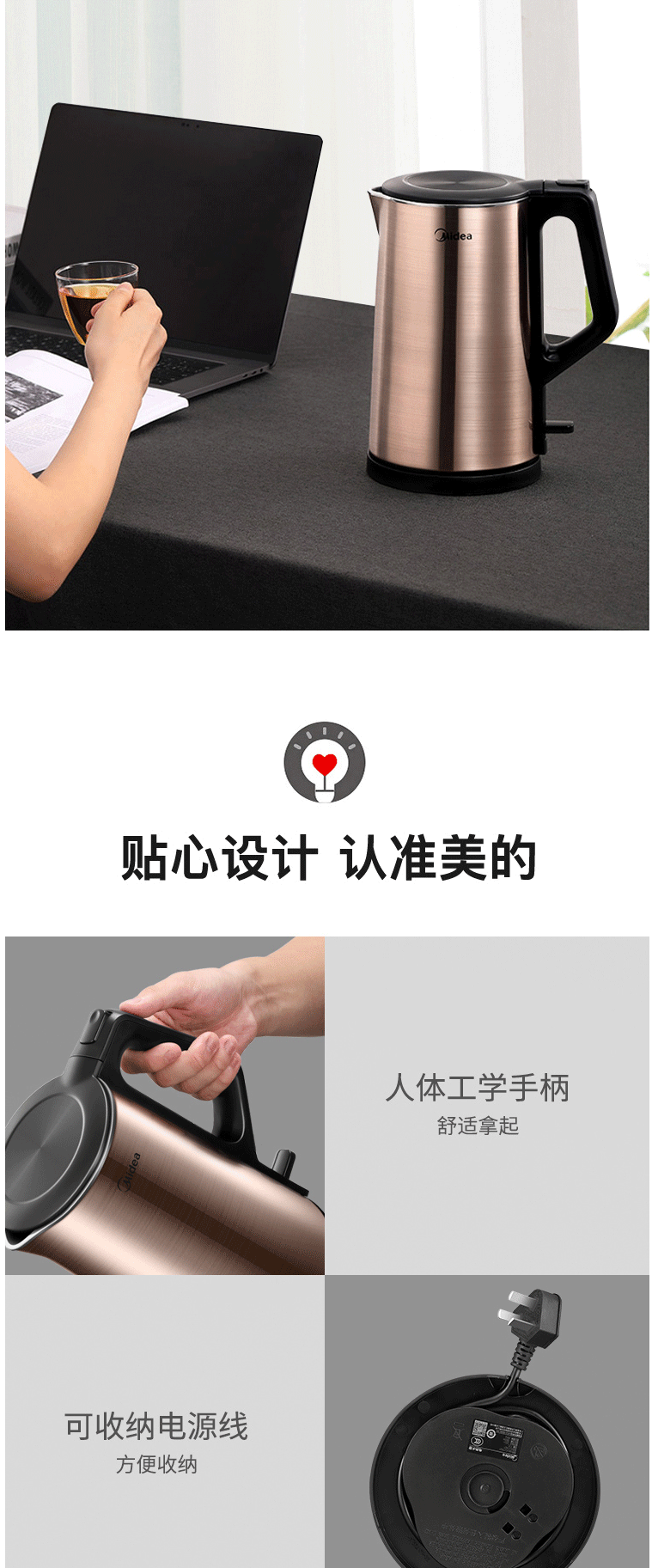 美的(Midea)电水壶热水壶烧水壶1.7L MK-SH17E312