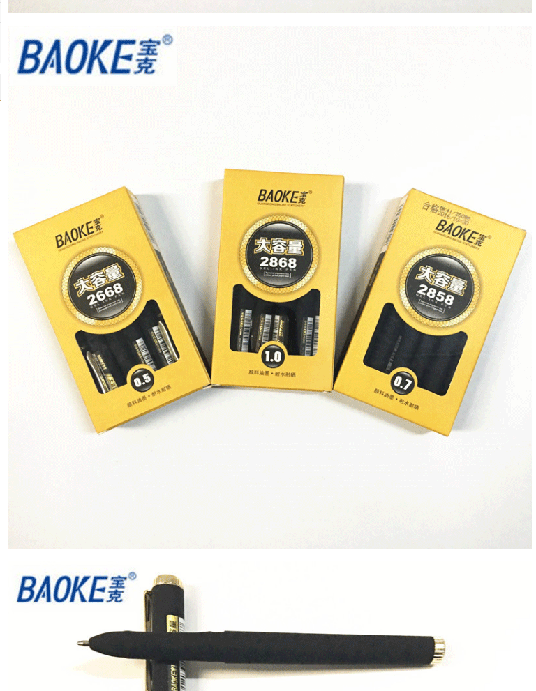 商品名称:宝克 PC2858大容量办公中性笔 磨砂杆签字笔 2858/0.7MM/黑色 12支/盒