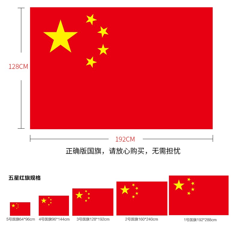 商品名称:中国五星红旗 4号国旗不带杆 96*144cm
