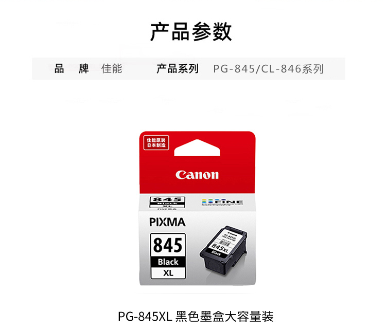 商品名称:佳能(Canon)PG-845XL黑色大容量墨盒(适用MG3080/MG2400/TS308/TR4580)