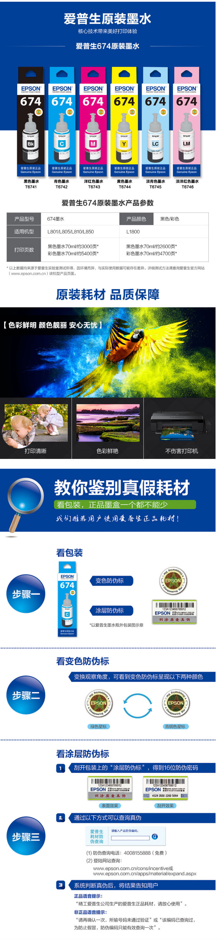 爱普生(EPSON)T6741(C13T674180)黑色墨水(适用于:L801 L810 L850 L1800)