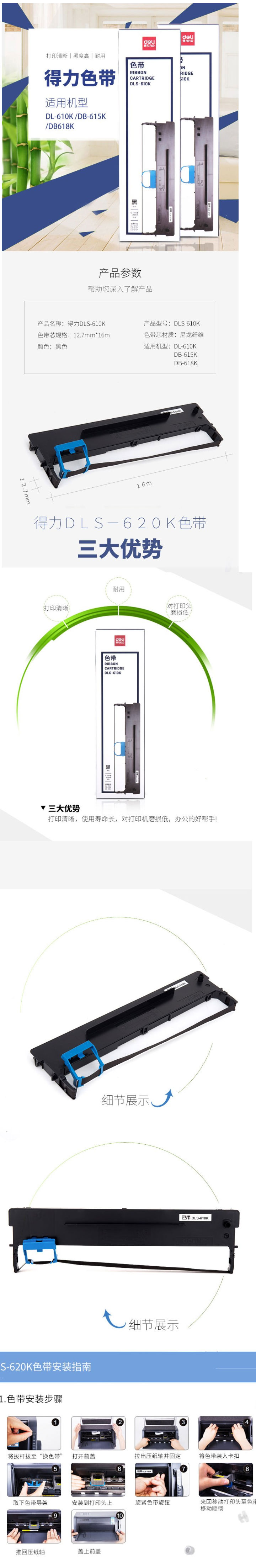 商品名称:得力 DLS-610K大容量针式打印机黑色色带 【适用610K/615K】