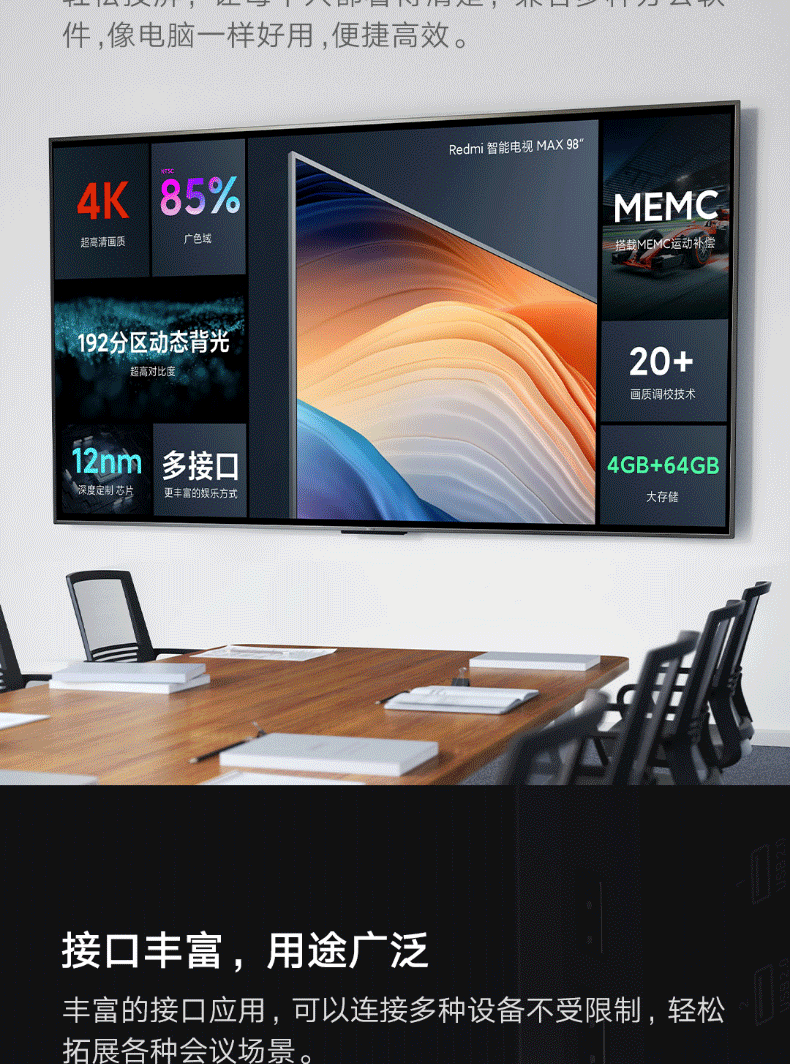 小米Redmi红米智能电视机MAX 98英寸4K超高清 包安装-挂装