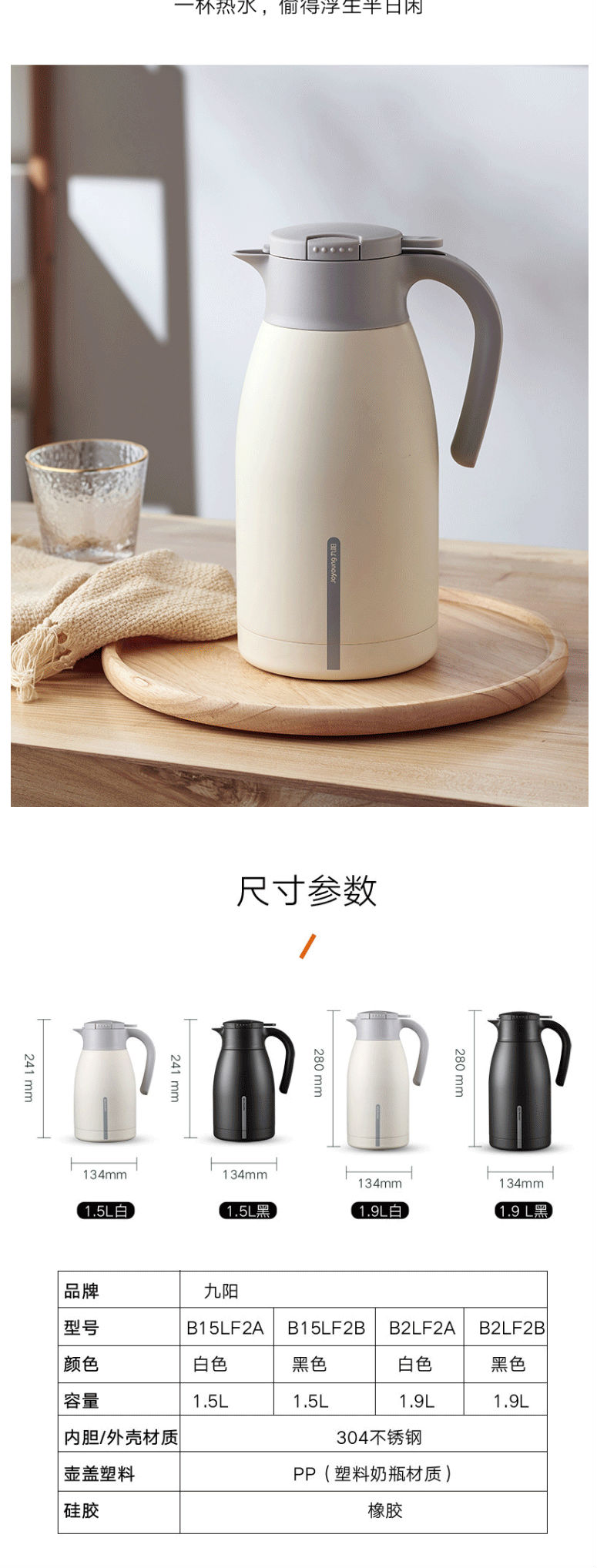 九阳(Joyoung)保温水壶热水壶保温瓶大容量暖水壶热水瓶开水瓶1.9L B19LF2A
