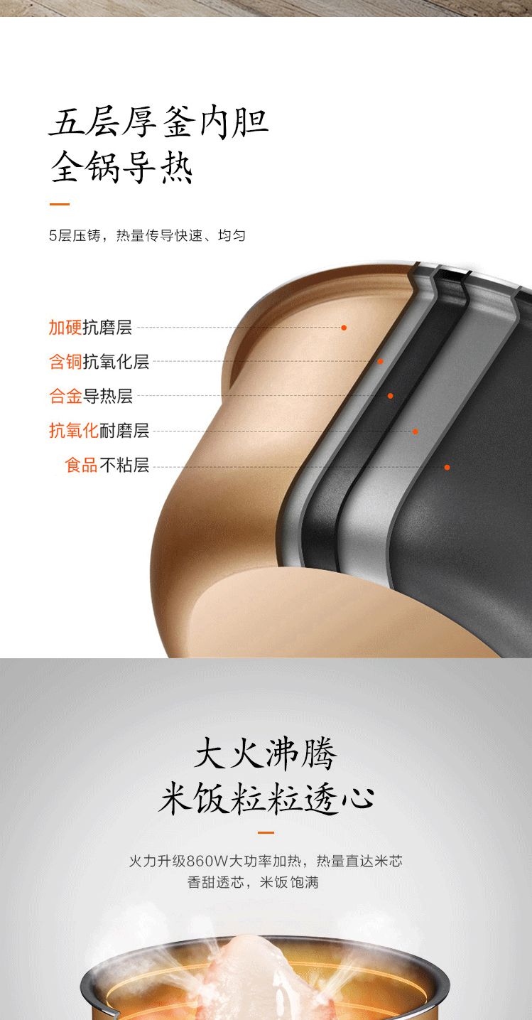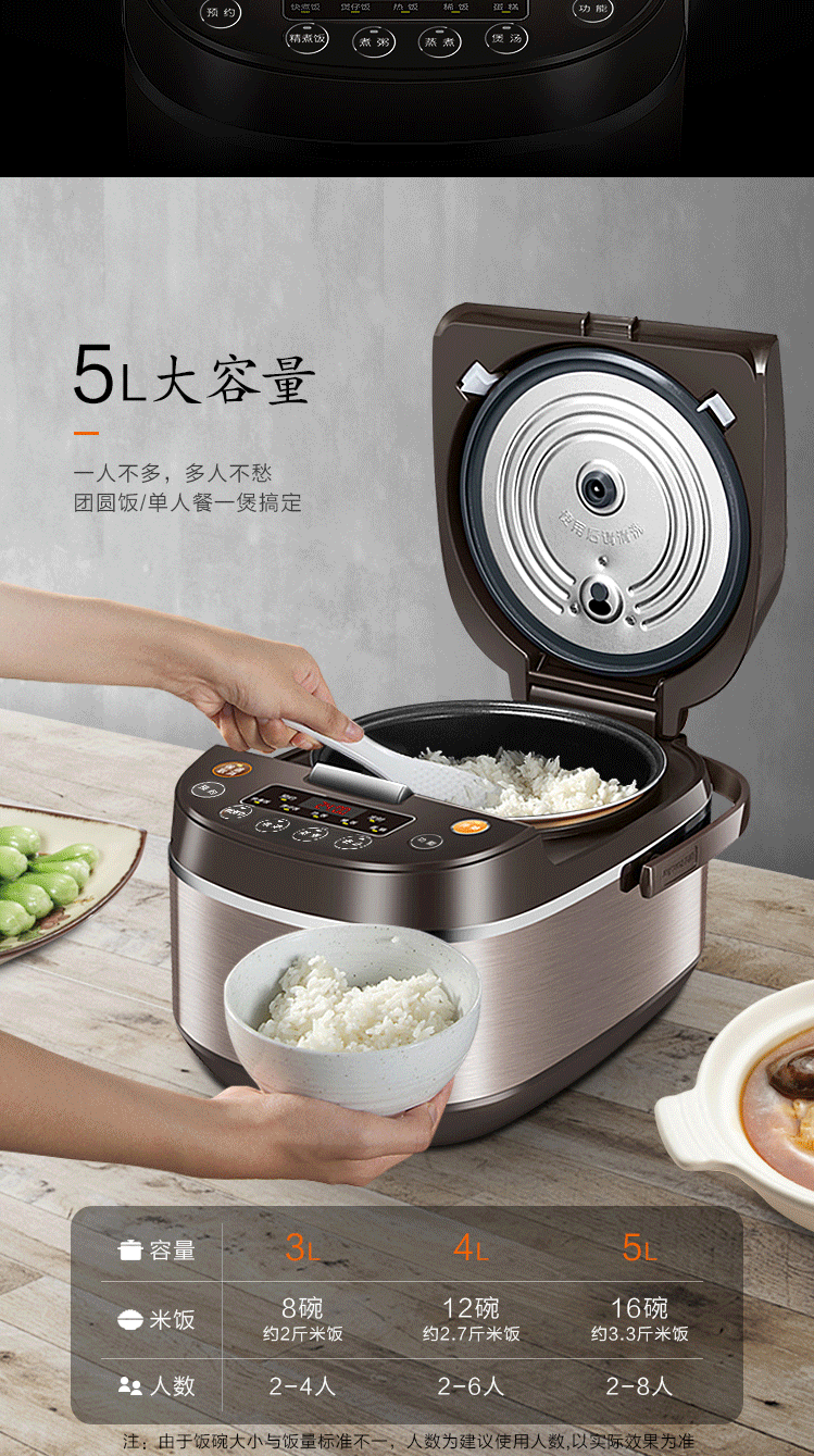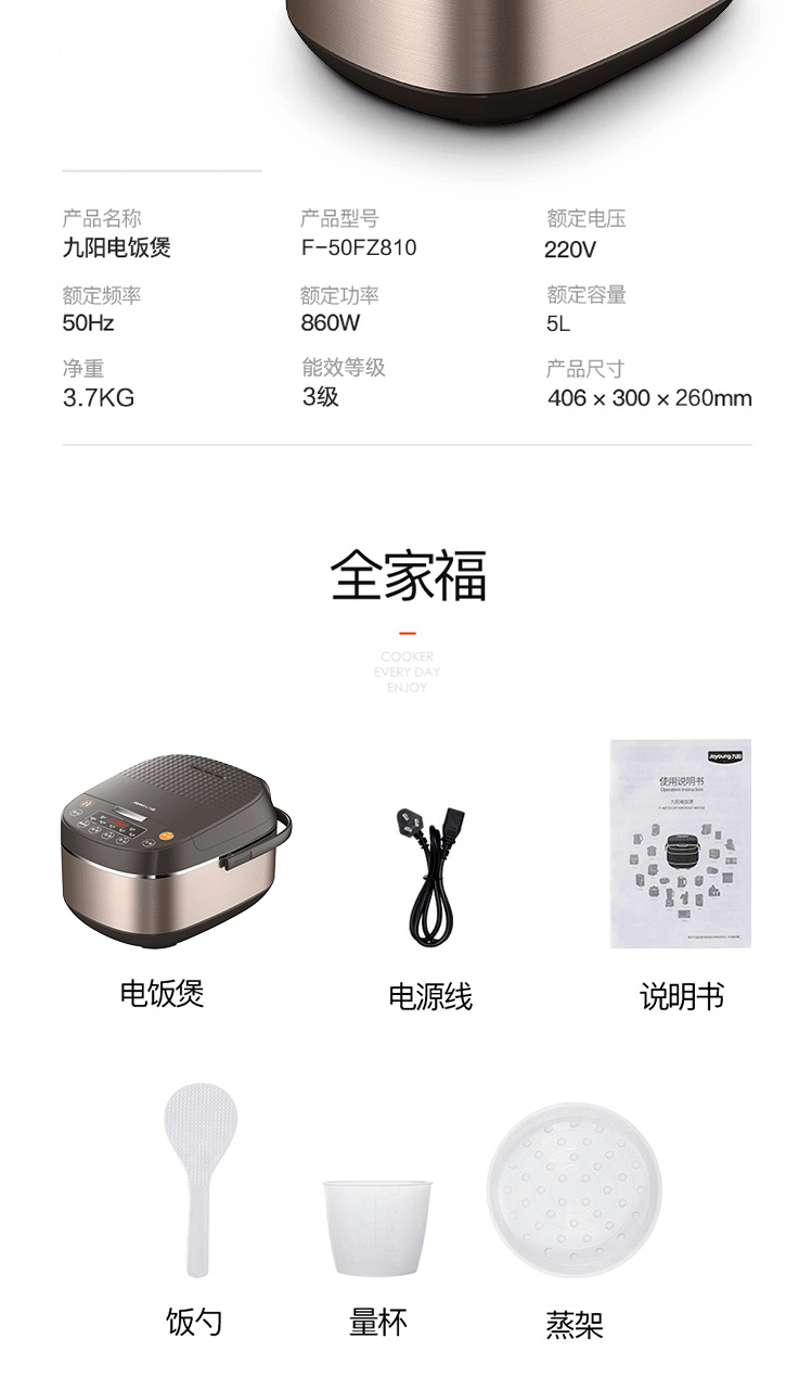 商品名称:九阳(Joyoung)电饭煲电饭锅5L大容量智能预约 F-50FZ810