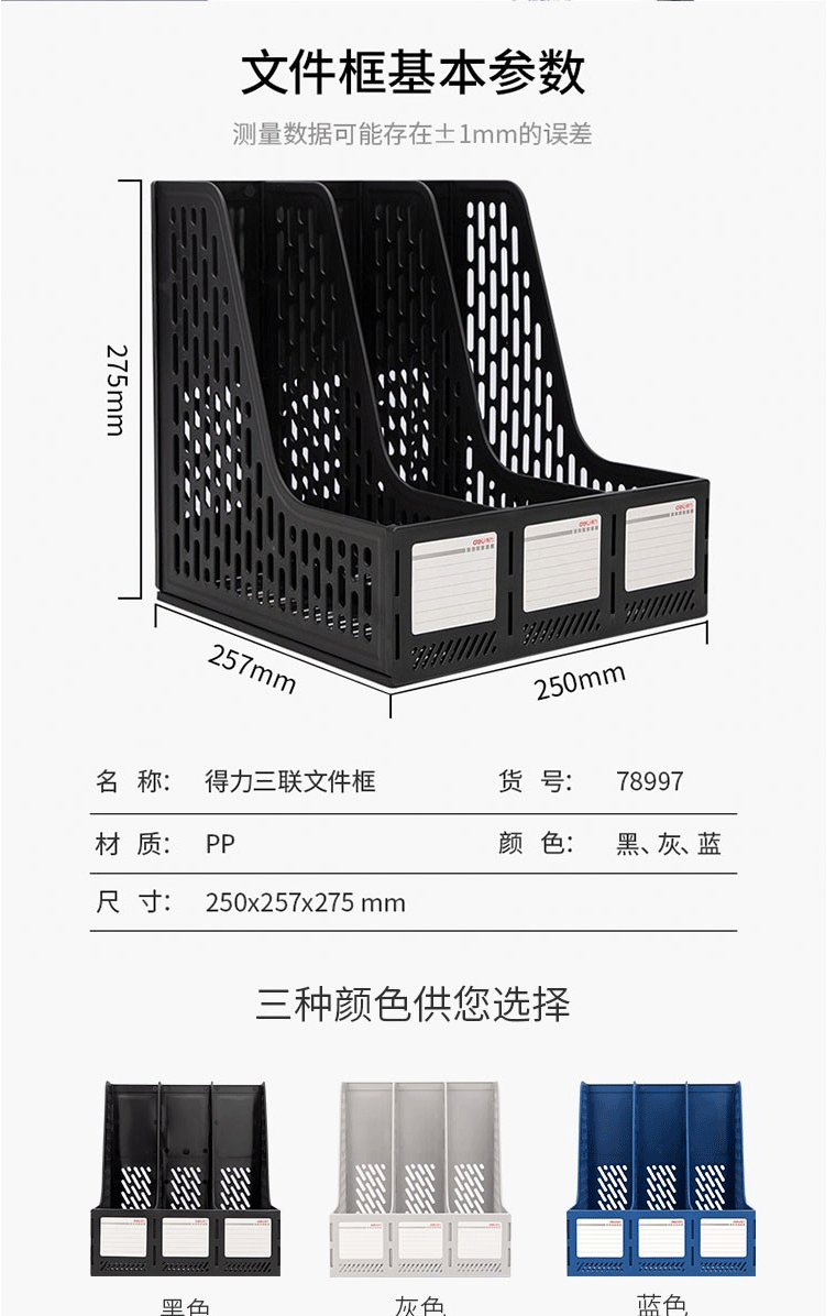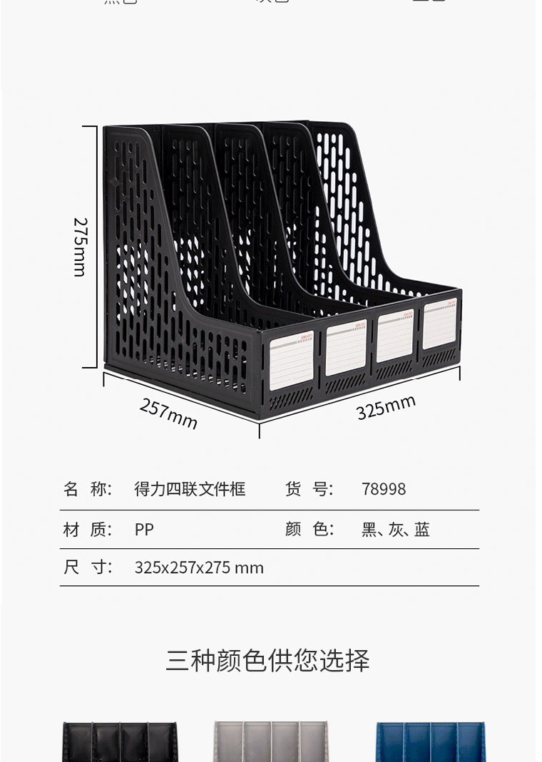 商品名称:得力(deli)文件栏文件框资料框 三联-蓝色78997