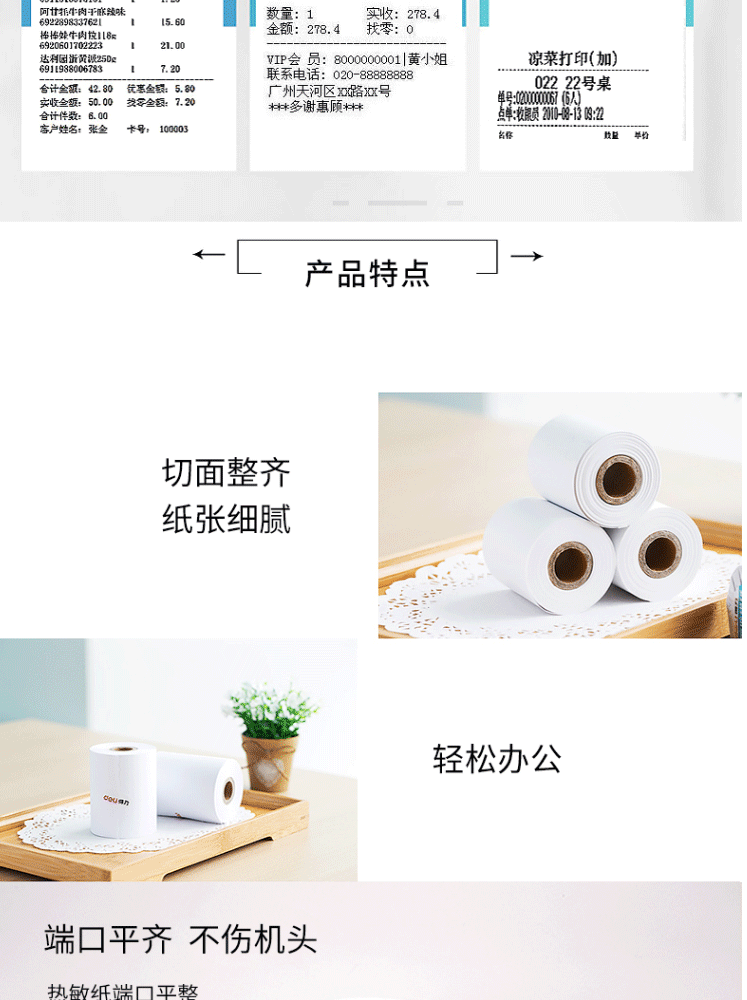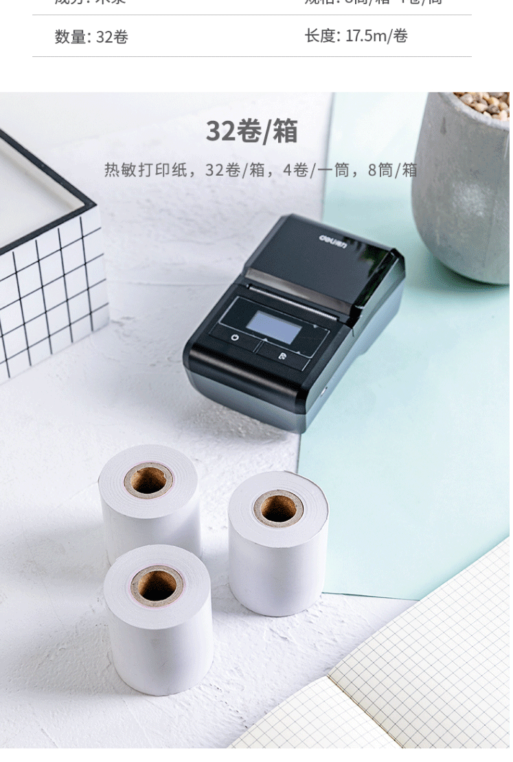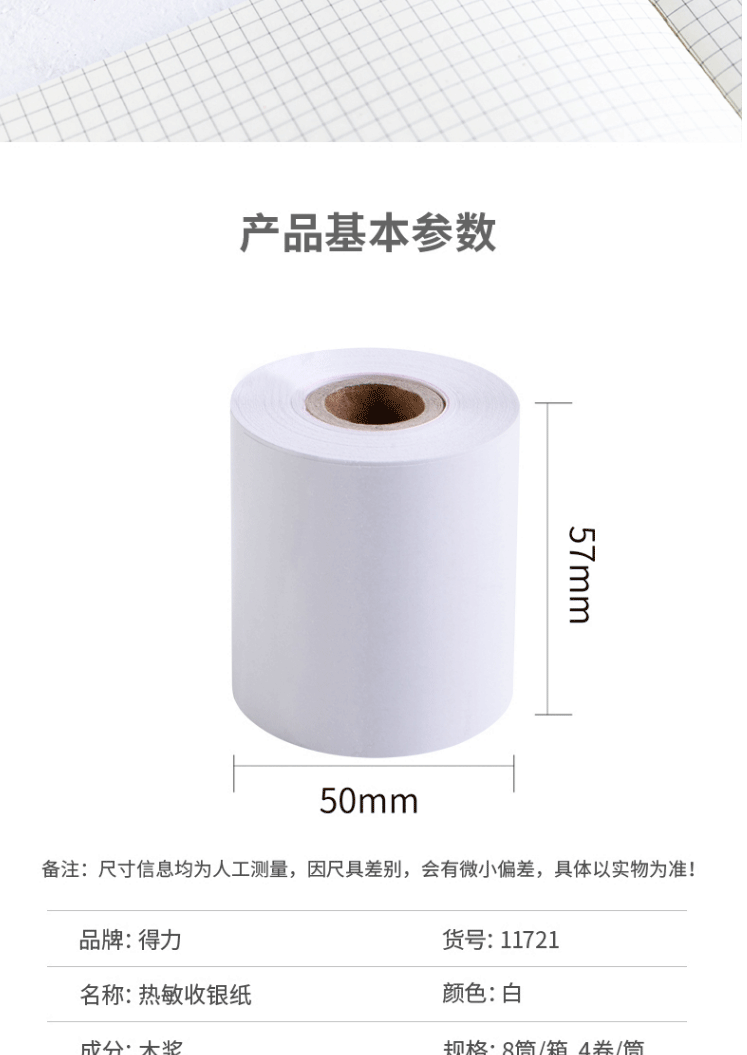 商品名称:得力(deli)热敏小票纸 57mm*50mm 11721 4卷/筒