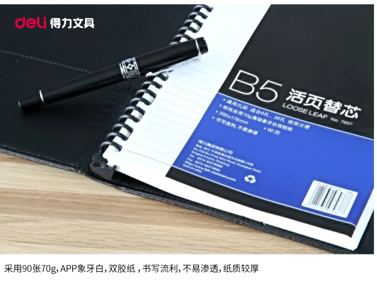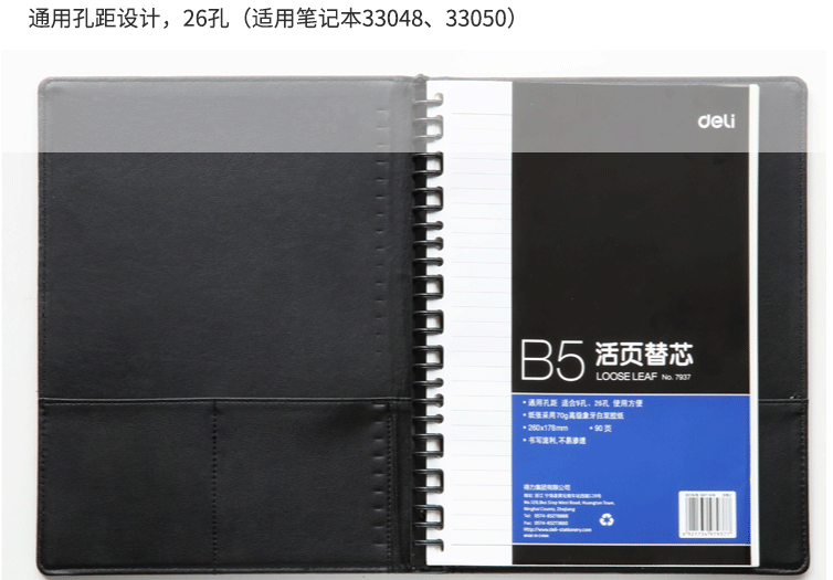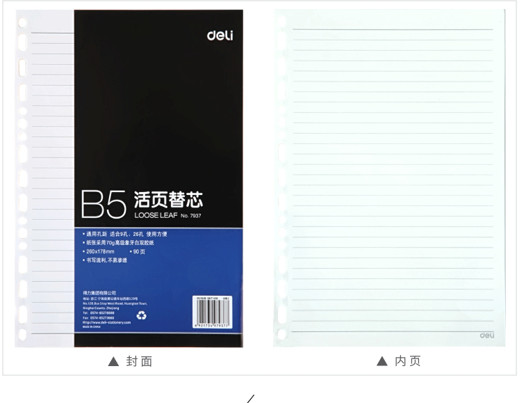 商品名称:得力(deli)16K90张活页本册替芯 9孔26孔记事本笔记本子内页 7937